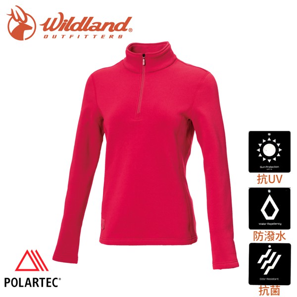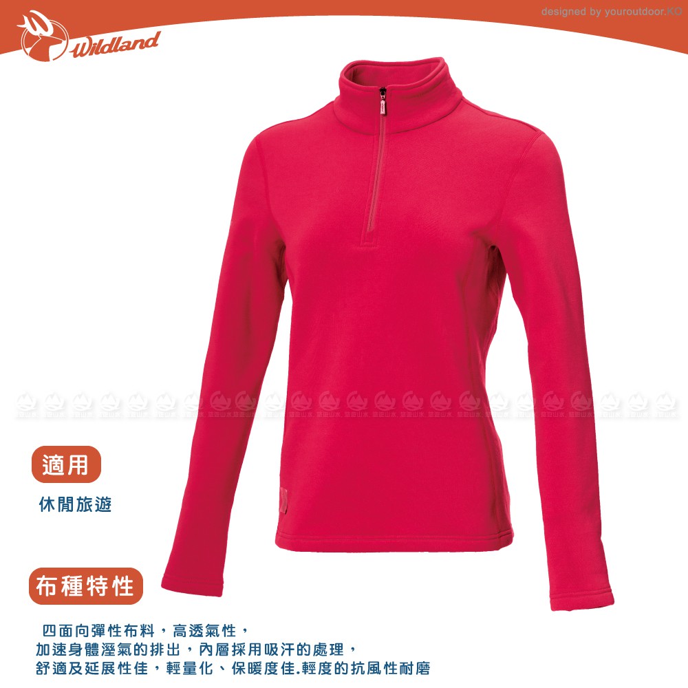【Wildland 荒野 女 Polartec PSP彈性功能衣《玫瑰紅》】P2603/半領襟/運動衣/休閒衫/悠遊山水