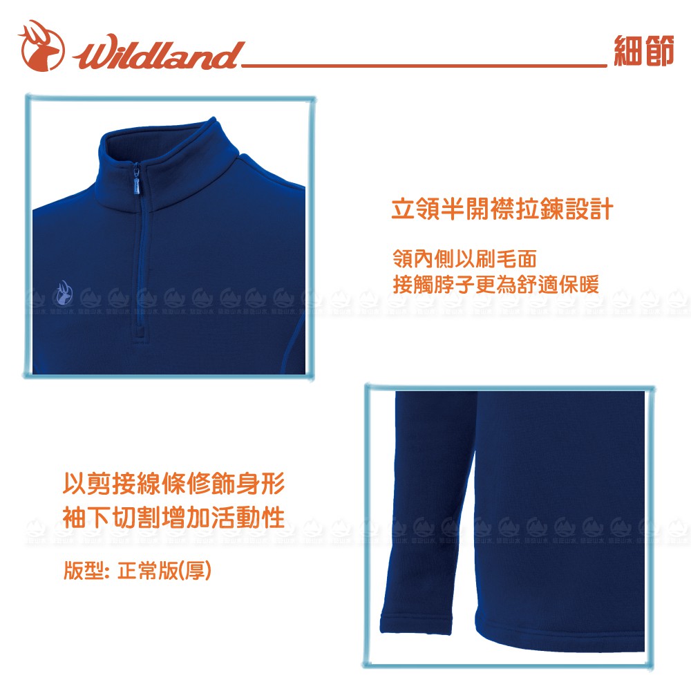【Wildland 荒野 男 Polartec PSP彈性功能衣《中藍》】P2606/半領襟/運動衣/休閒衫//悠遊山水
