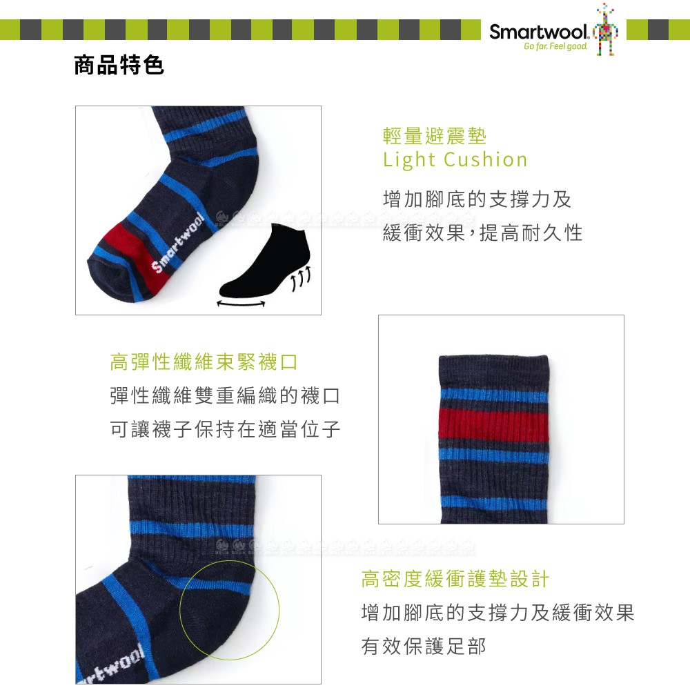 【SmartWool 美國 童健行輕量避震條紋中長襪《深海軍藍》】SW001212/排汗襪/保暖襪/運動襪/兒/悠遊山水