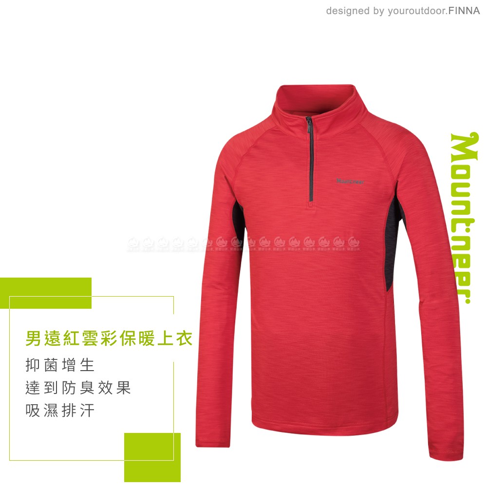 【Mountneer 山林 男遠紅雲彩保暖上衣《紅》】32P15/保暖上衣/長袖上衣/立領長袖/悠遊山水