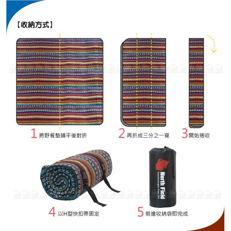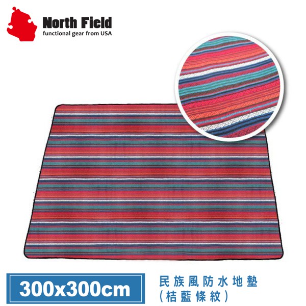 【North Field 美國 民族風防水地墊 300x300cm《桔藍條紋》】ND-146/防潮墊/野餐墊//悠遊山水