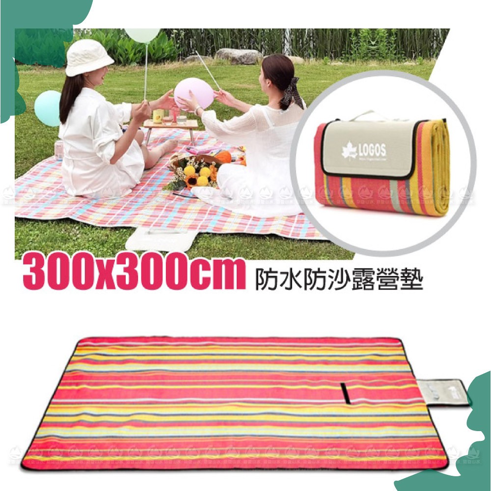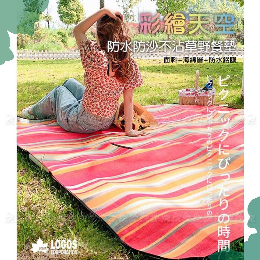 【LOGOS 日本 防水防沙不沾草露營墊 《亮彩條紋》 】7383329/露營睡墊/野餐墊/防潮墊/地墊/地布/悠遊山水