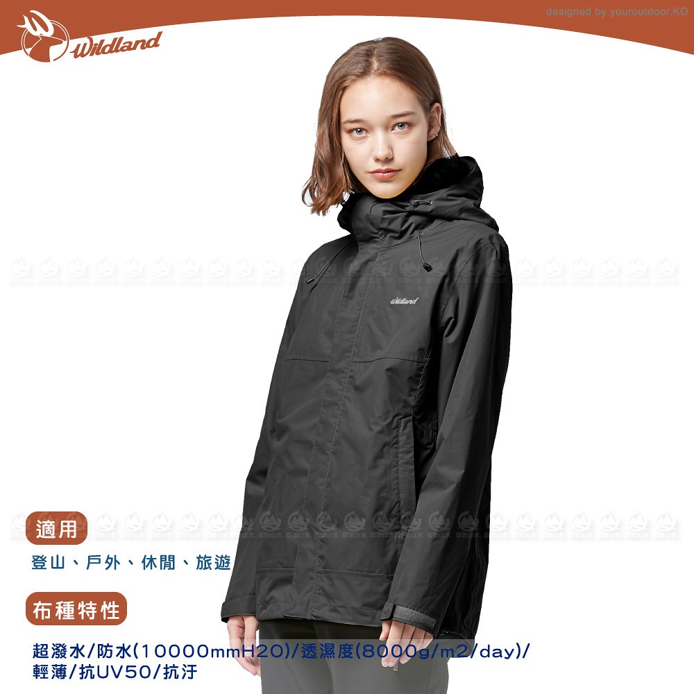 【Wildland 荒野 女 輕薄防水高透氣機能外套《黑》】W3913/連帽外套/風衣/衝鋒外套/悠遊山水