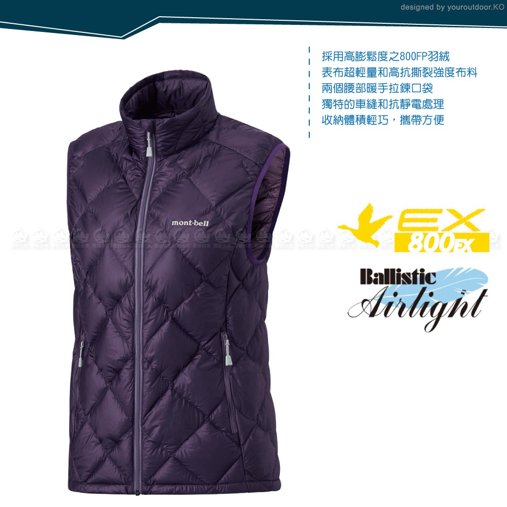 Mont-Bell 日本 女 800FP 羽絨背心《茄紫》1101469/輕量羽絨背心/鵝絨保暖背心/防風/悠遊山水