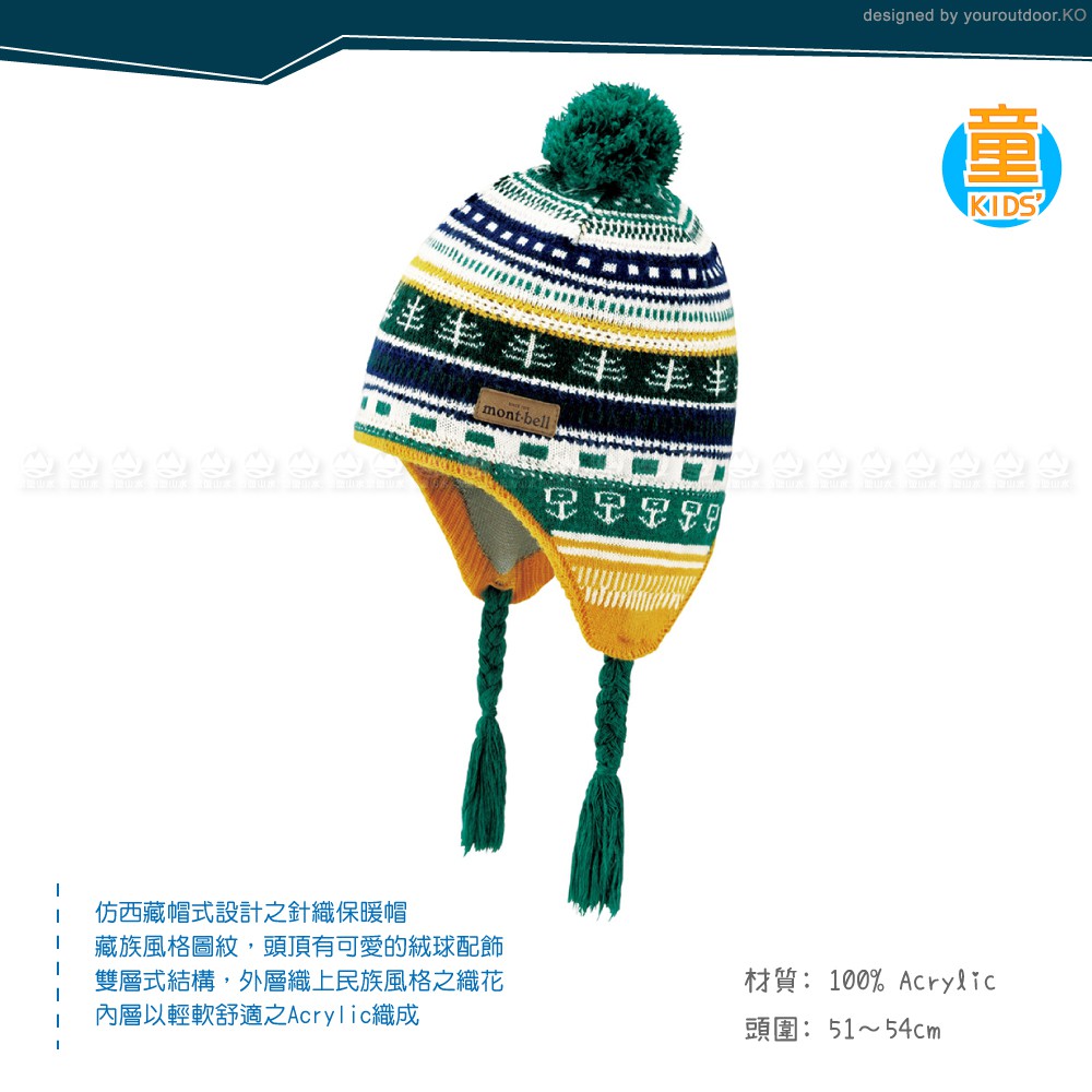 Mont-Bell 日本 童 Light Jacquard 保暖帽《綠》/1118402/雙層護耳帽/針織帽/悠遊山水