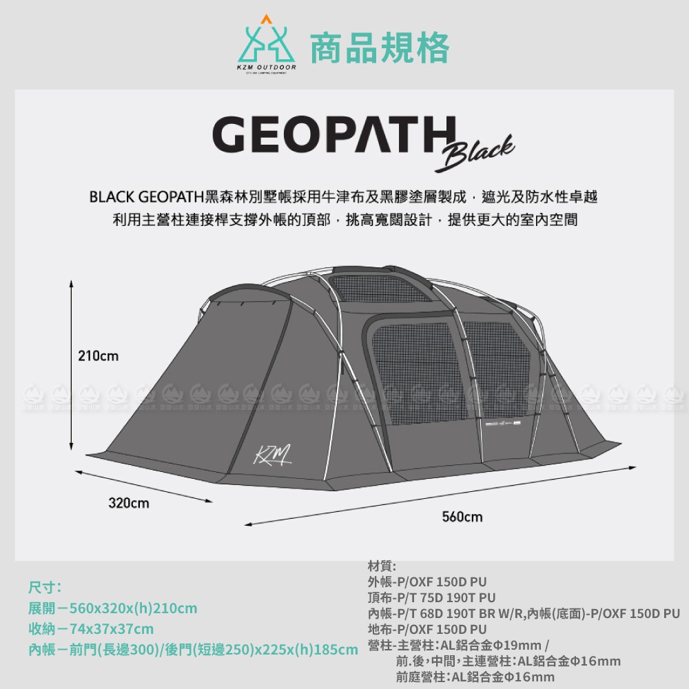 【KAZMI 韓國 BLACK GEOPATH 黑森林別墅帳】K9T3T005/家庭帳/露營帳篷/睡帳/悠遊山水
