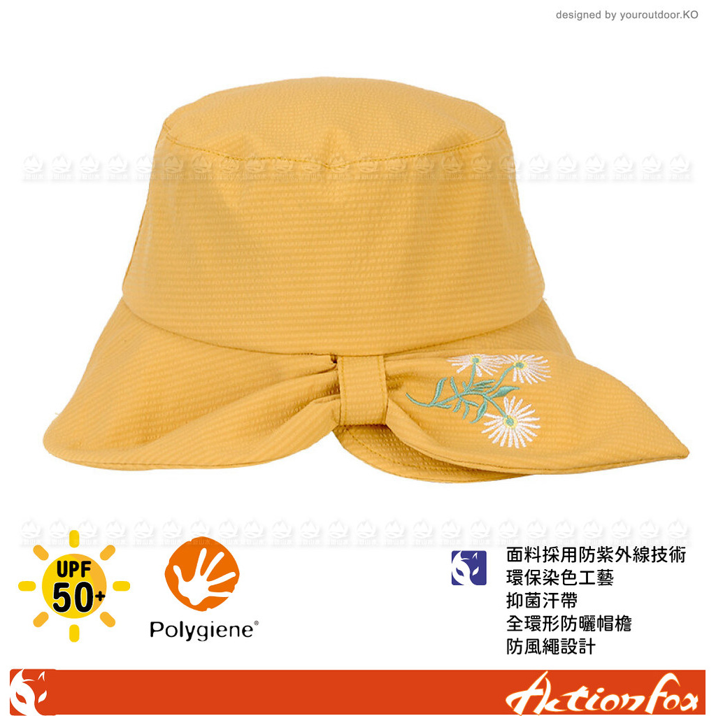 【ActionFox 挪威 女 抗UV抗 菌鏽花遮陽帽《芥末黃》】631-5442/漁夫帽/防曬帽/休閒帽
