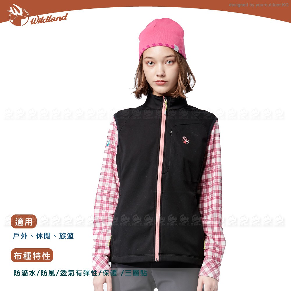 【Wildland 荒野 女 彈性三層防風功能背心《黑》】0A82701/休閒背心/吸濕快乾/輕薄耐磨/釣魚登/悠遊山水