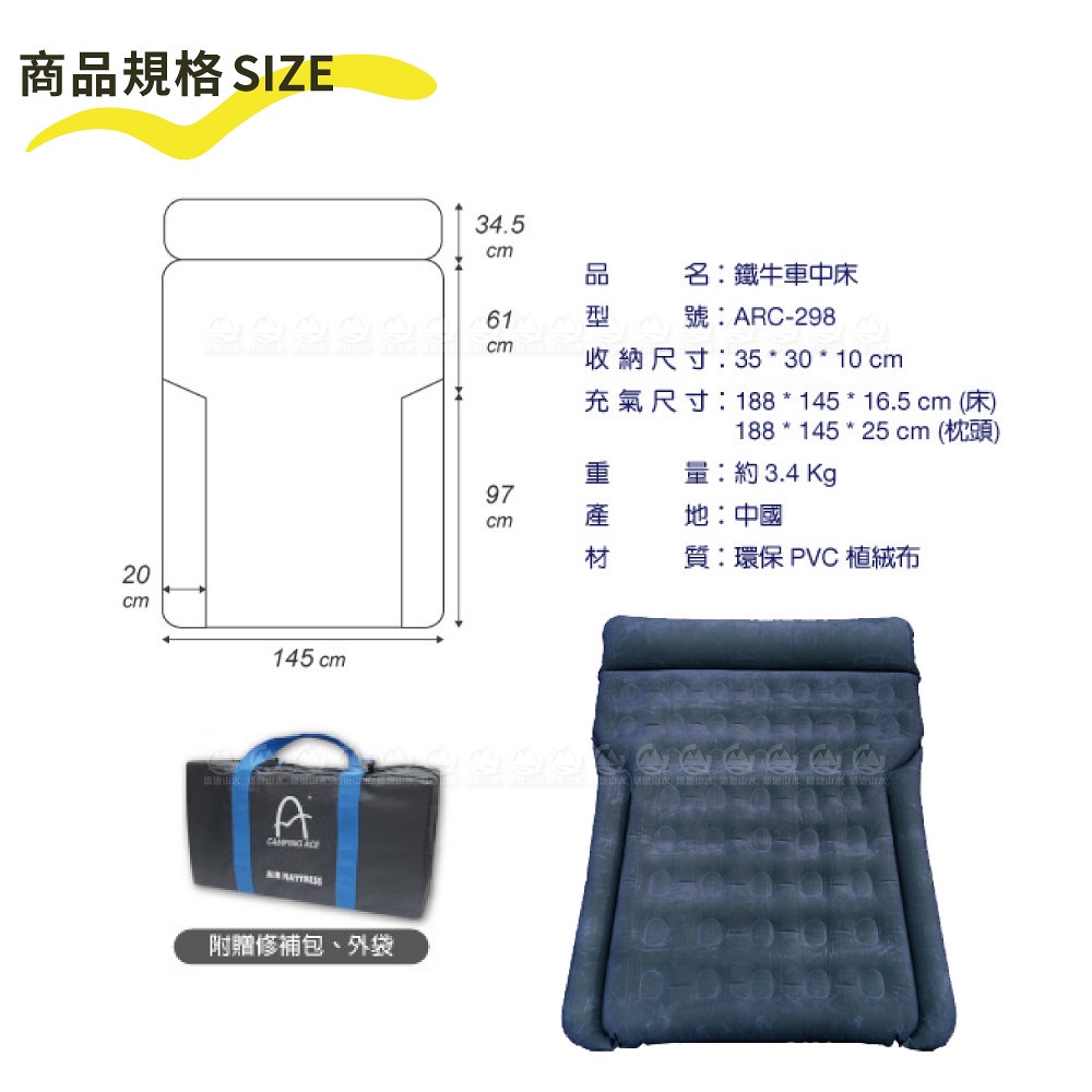 【CAMPING ACE 野樂 鐵牛車中床 附袋《鐵灰》】ARC-298/充氣床/露營床墊/車旅