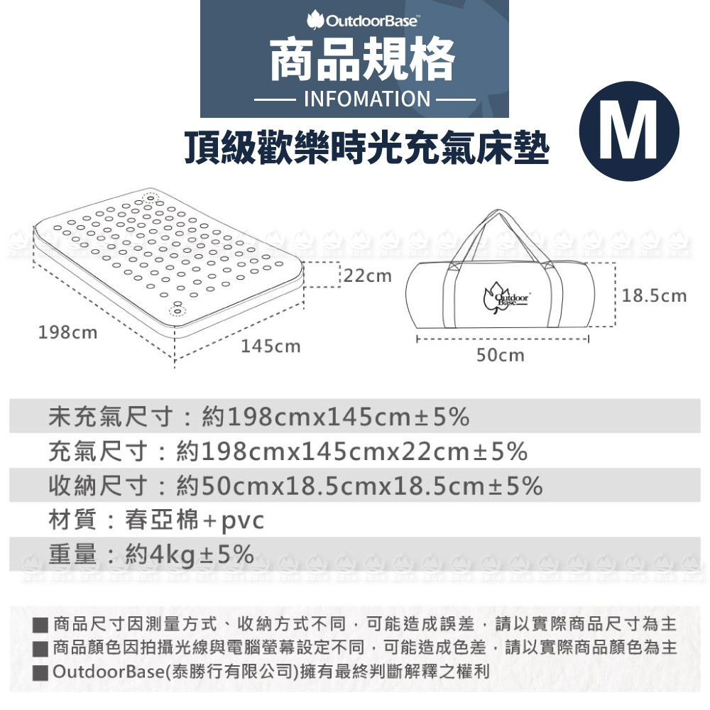 【OutdoorBase 頂級歡樂時光充氣床墊《M》198x145x22cm】23748/睡墊/充氣床/露營床/悠遊山水