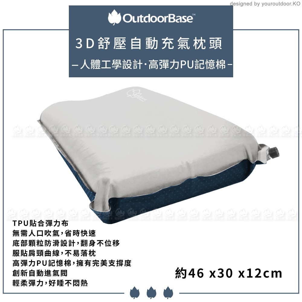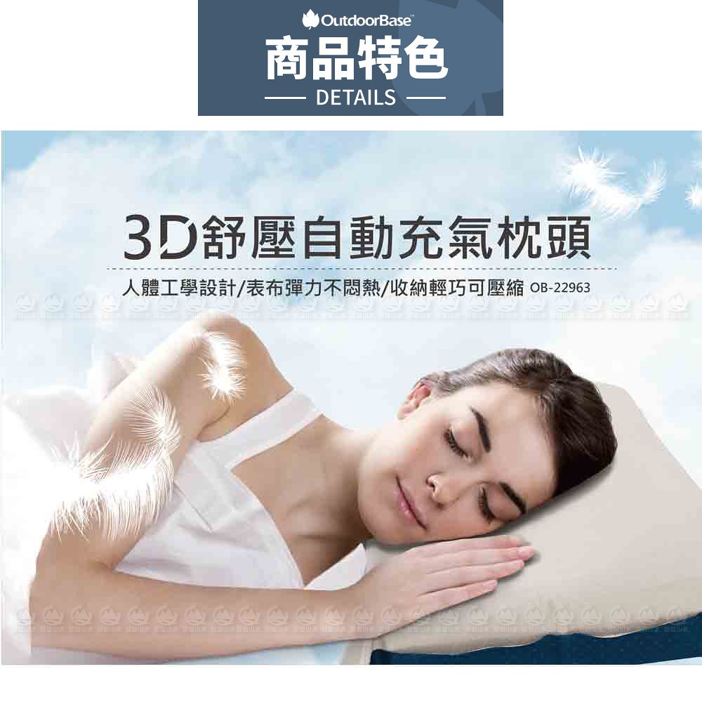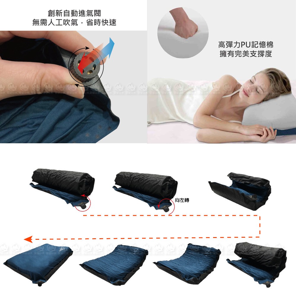 【OutdoorBase TPU 自動充氣枕《月光白/藍》】22987/可壓縮好收納枕頭/露營/旅行枕/悠遊山水