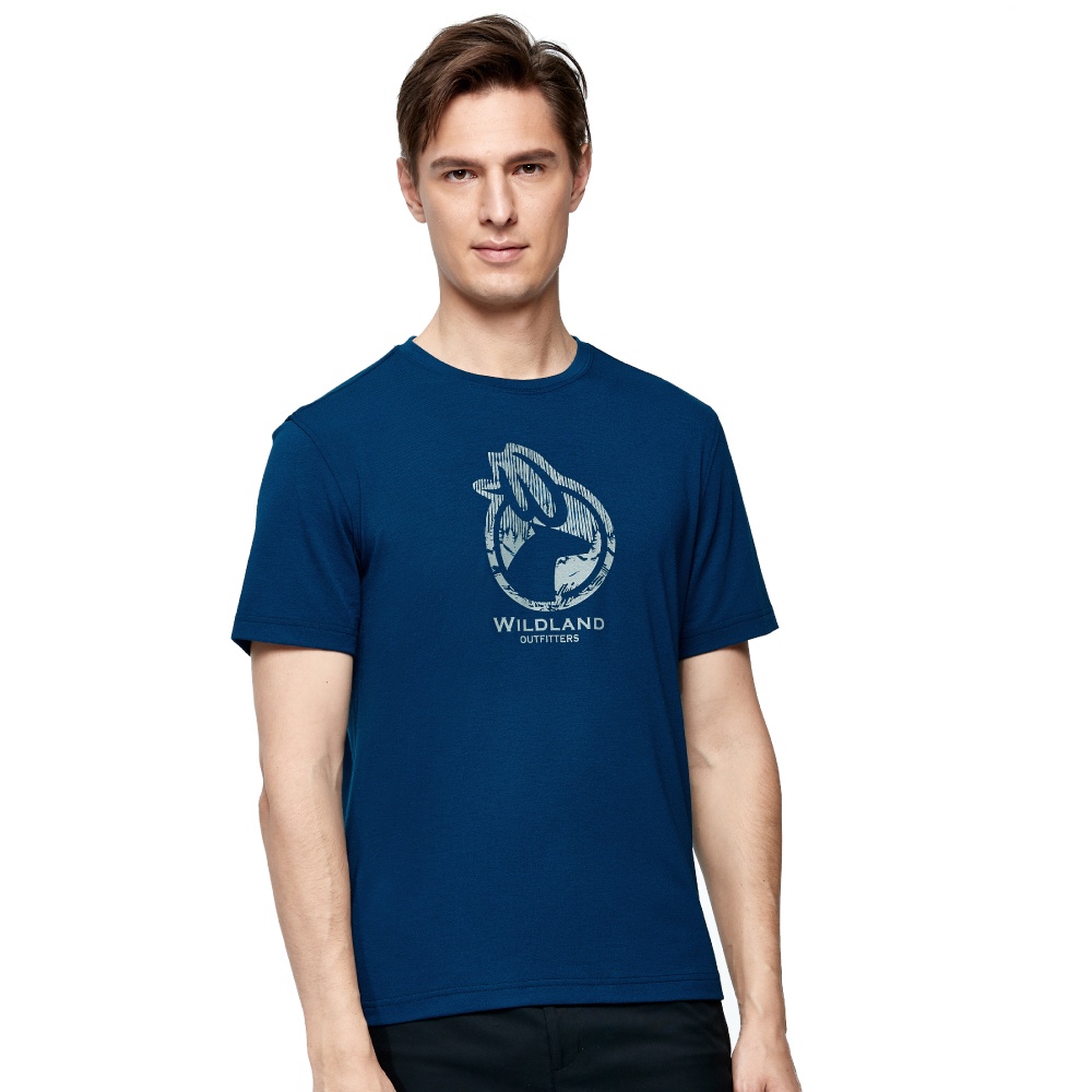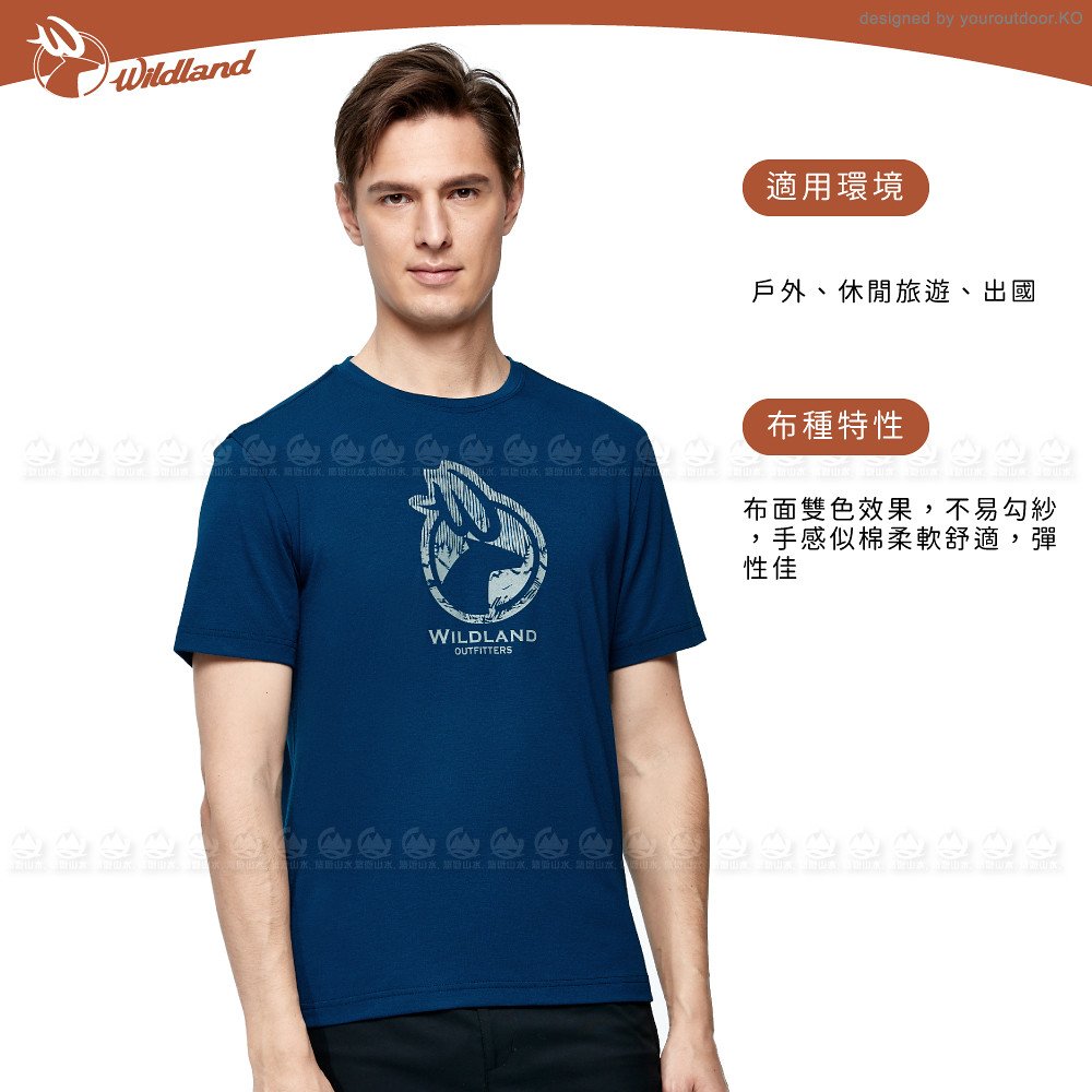 【Wildland 荒野 男 彈性LOGO印花圓領上衣《土耳其藍》】0A91606/短袖/圓領T/運動排汗衣//悠遊山水