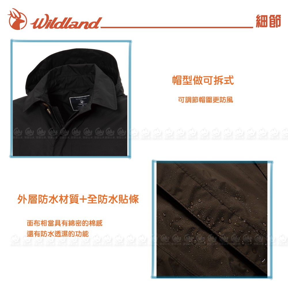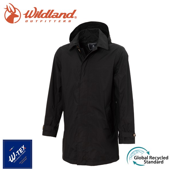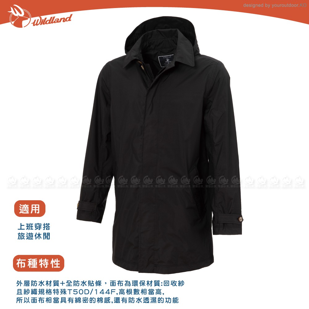 【Wildland 荒野 男 長版防水可脫帽時尚外套《黑》】0A72906/風雨衣/防水外套/大衣/悠遊山水