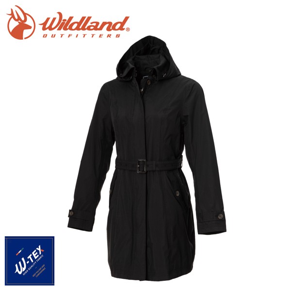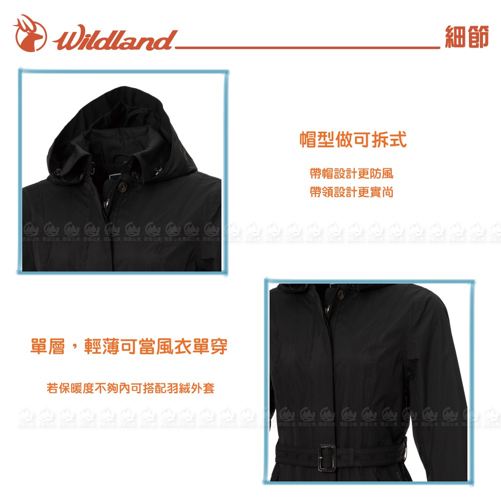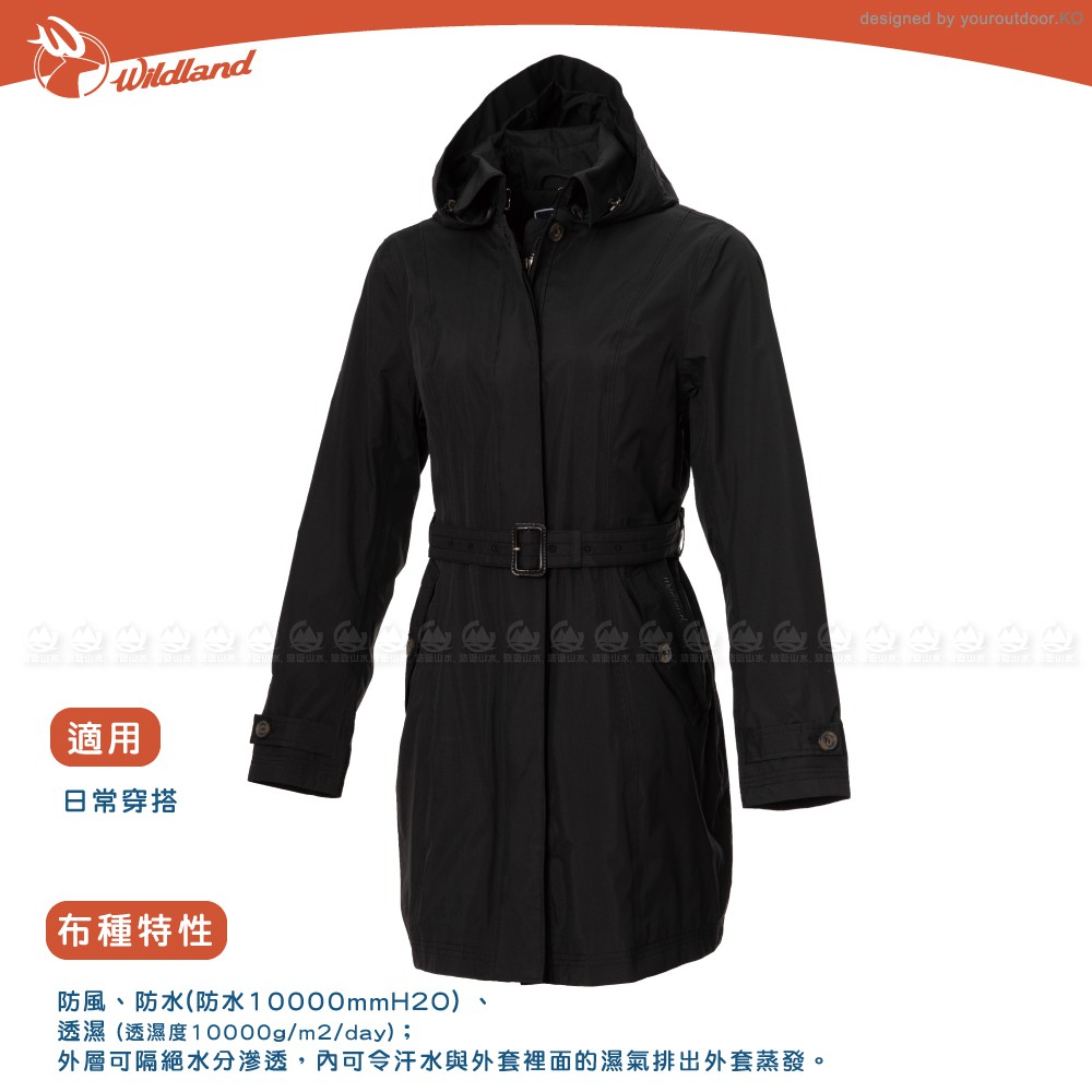 【Wildland 荒野 女 長版防水防風時尚外套《黑》】0A72909/風雨衣/防水外套/大衣/悠遊山水