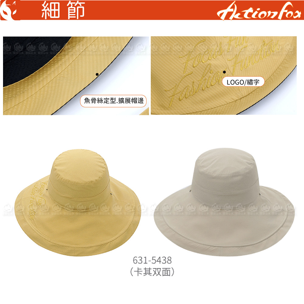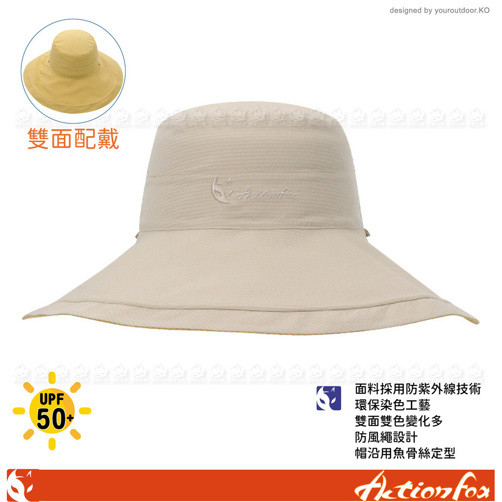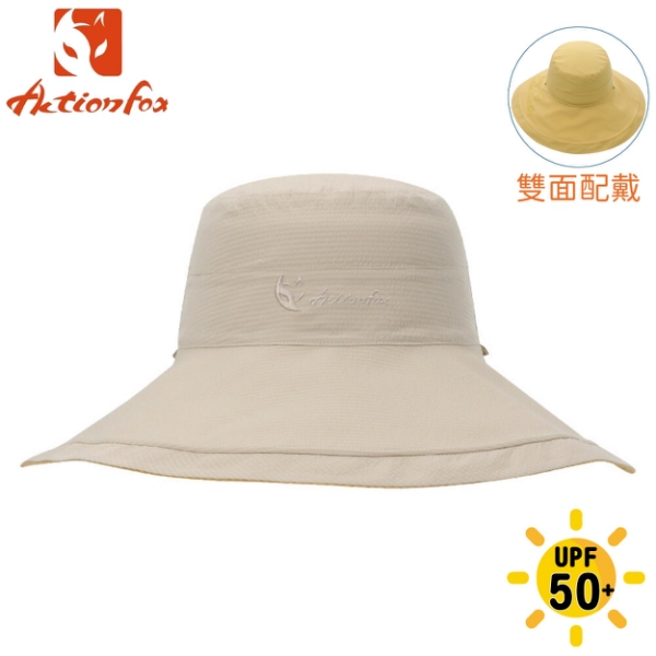 【ActionFox 挪威 女 抗UV大帽沿雙面遮陽帽《卡其/芥末黃》】631-5438/圓盤帽/防曬帽/透氣/登山
