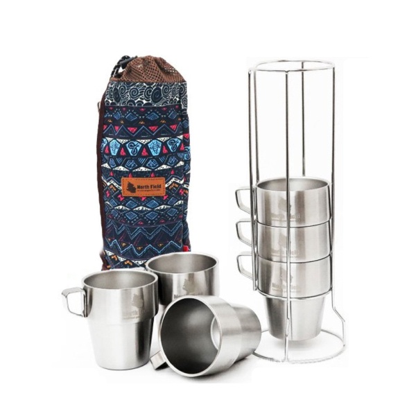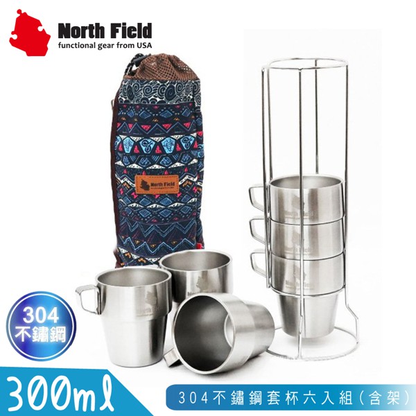 【North Field 美國 民族風304不鏽鋼套杯六入組(含架)《藍》】281/飲料杯/環保杯/登山露營咖/悠遊山水