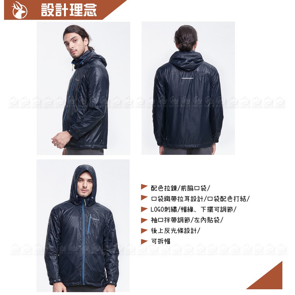 【Wildland 荒野 男 15D天鵝絨防風保暖外套《迎賓藍》】0A82922/連帽外套/風衣/運動外套/悠遊山水