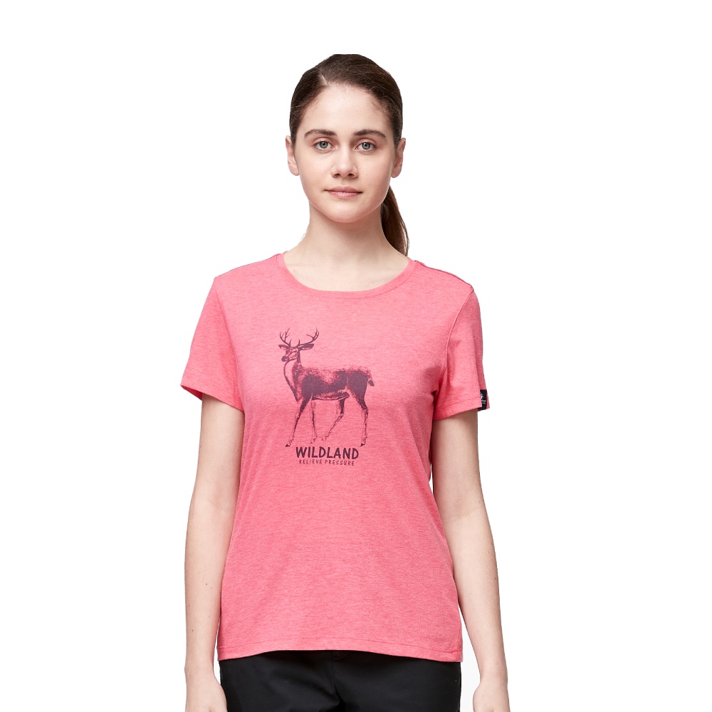【Wildland 荒野 女 彈性圓領印花除臭抗菌上衣《摩曼粉》】0A91601/短袖/圓領T/運動衣/休閒衫/悠遊山水