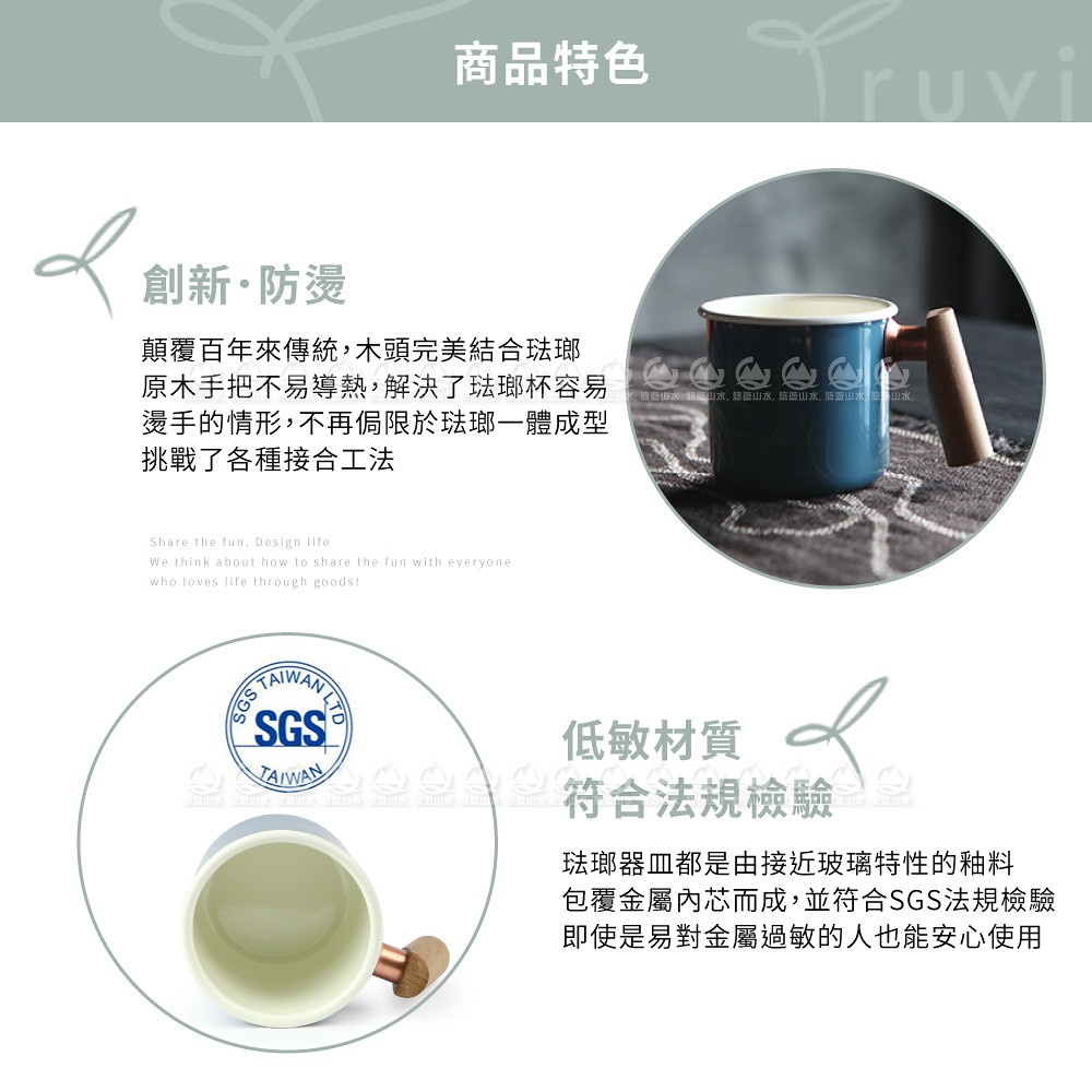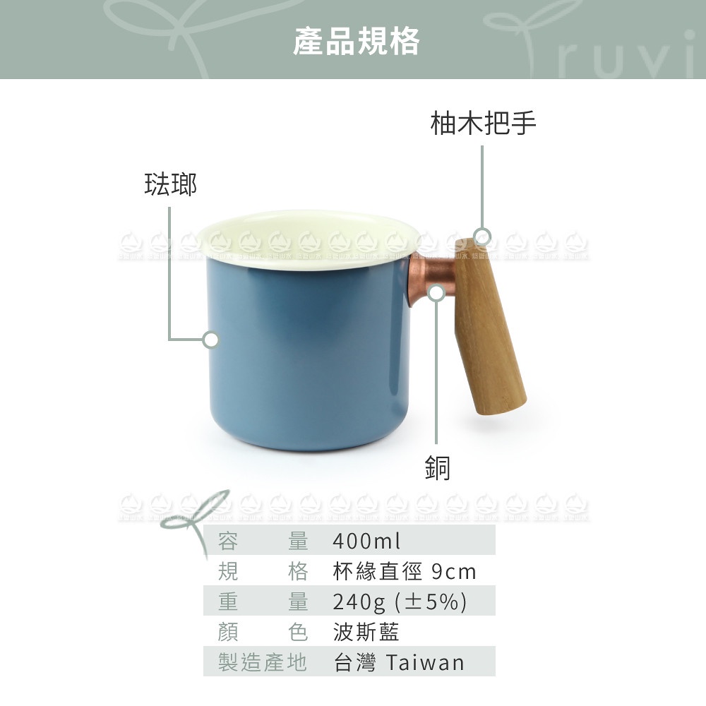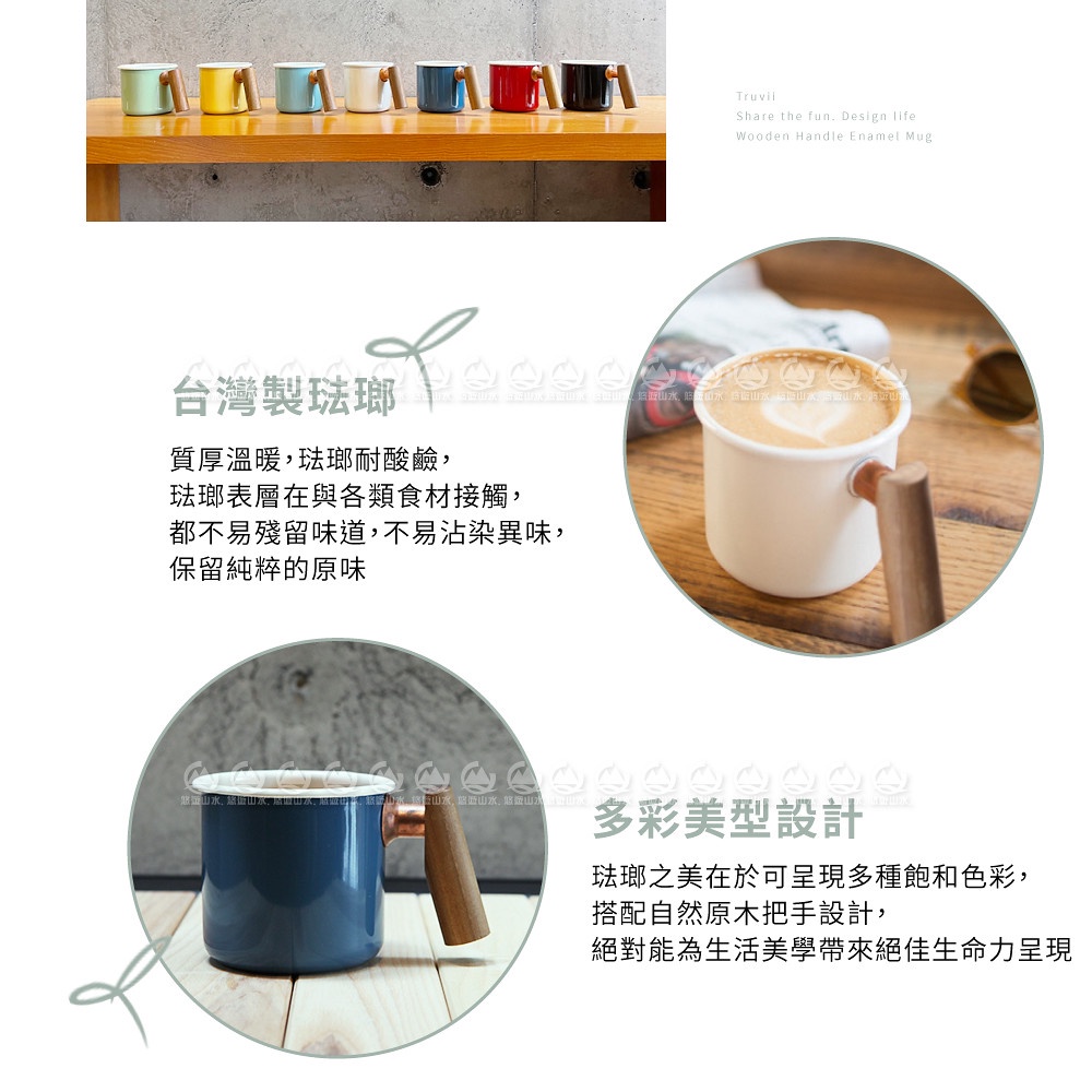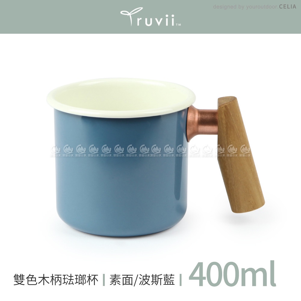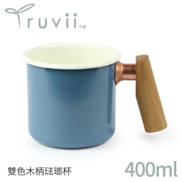 【Truvii 趣味 雙色木柄琺瑯杯 400ml 柚木把手《素面/波斯藍》】1080/馬克杯/露營杯/茶杯/戶外餐具