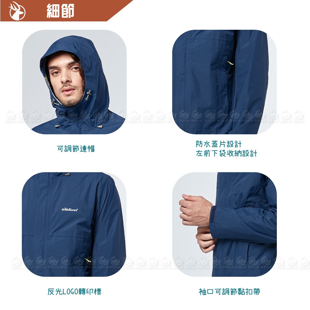 【Wildland 荒野 男 輕薄防水高透氣機能外套《深藍》】W3916/連帽外套/風衣/衝鋒外套/悠遊山水
