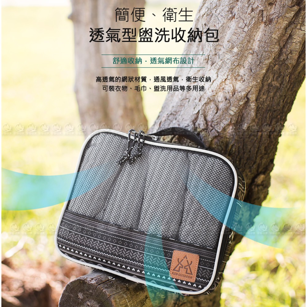 【KAZMI 韓國 KZM 彩繪民族風透氣盥洗收納包】K20T3B009/收納包/露營收納/旅行收納/悠遊山水