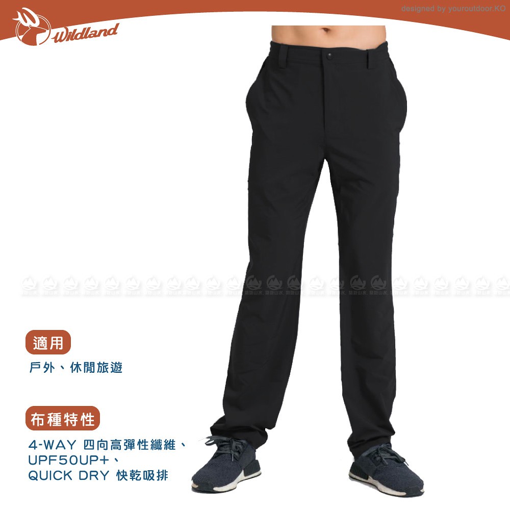 【Wildland 荒野 男 彈性抗UV直筒長褲《黑》】S1372/防曬褲/運動褲/休閒褲/工作褲/悠遊山水