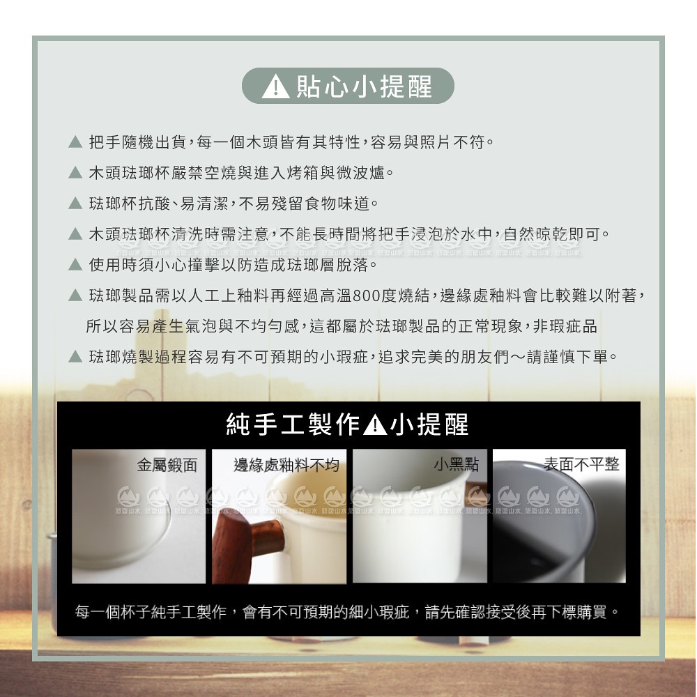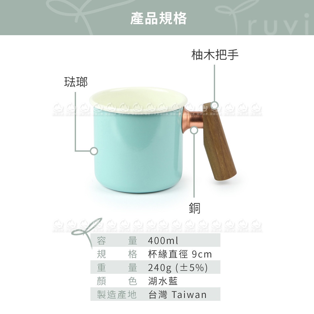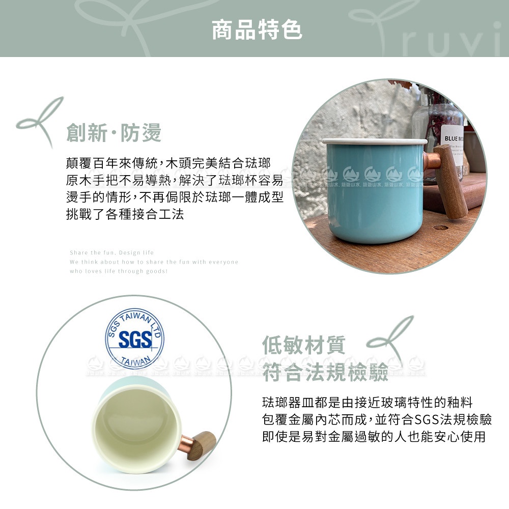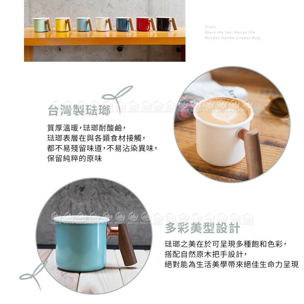 【Truvii 趣味 雙色木柄琺瑯杯 400ml 柚木把手《素面/湖水藍》】1080/馬克杯/露營杯/茶杯/戶外餐具