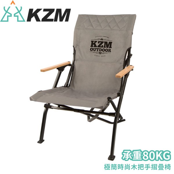 【KAZMI 韓國 極簡時尚木把手摺疊椅《灰》】K20T1C003/休閒椅/露營椅/收納椅/悠遊山水