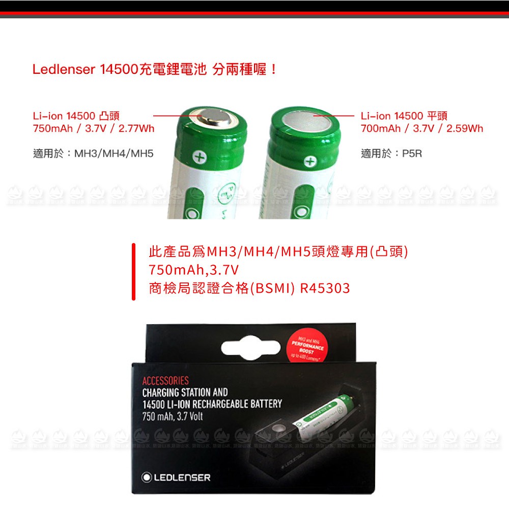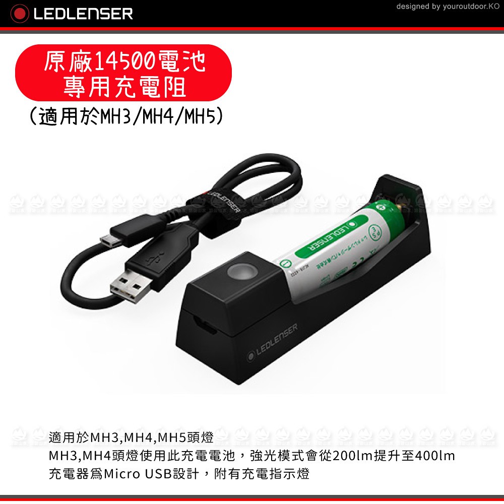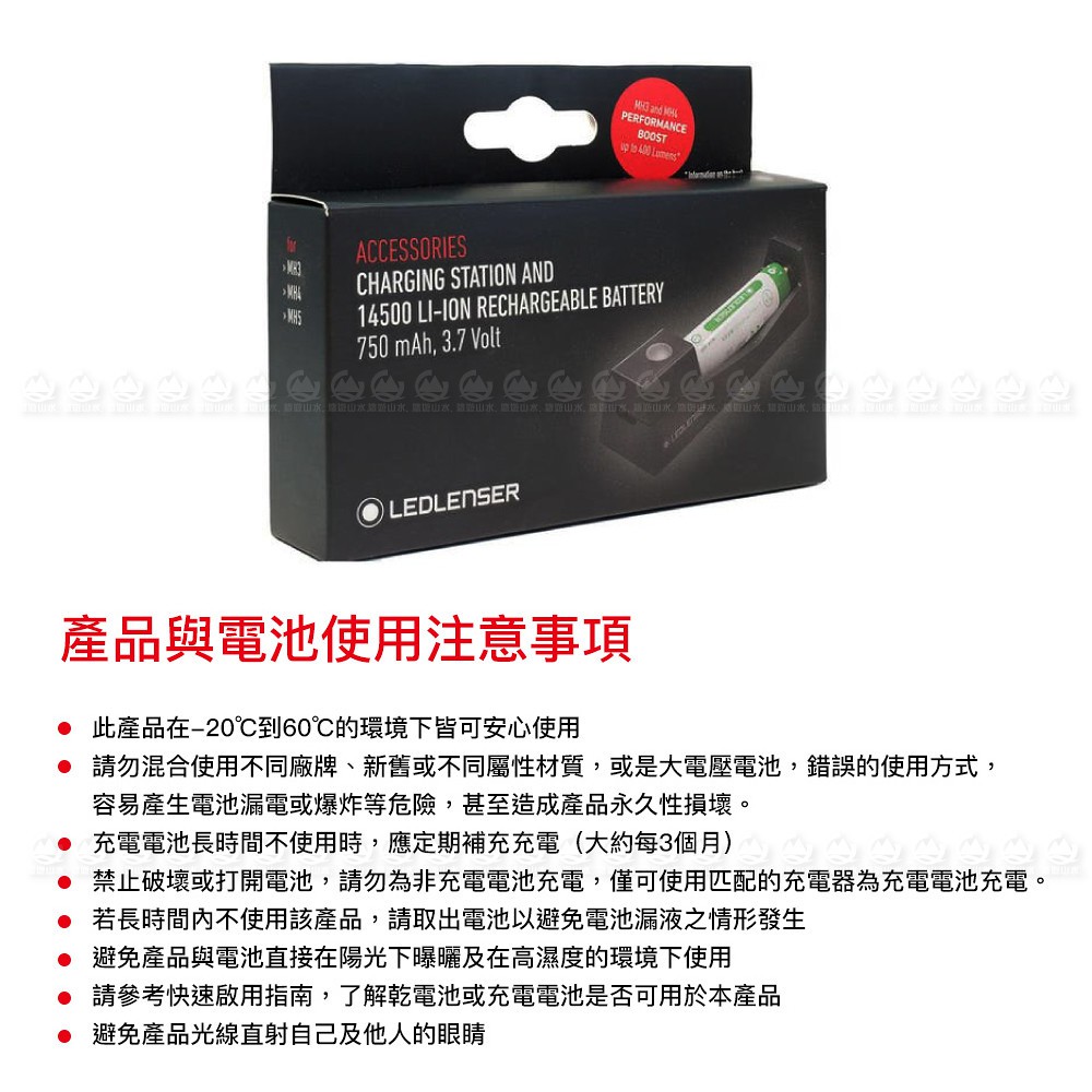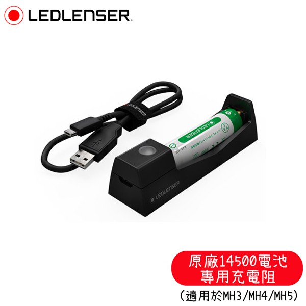【LED LENSER 德國 原廠14500(凸頭)充電電池+充電器專用充電組】500986/頭燈電池/迷你型/悠遊山水