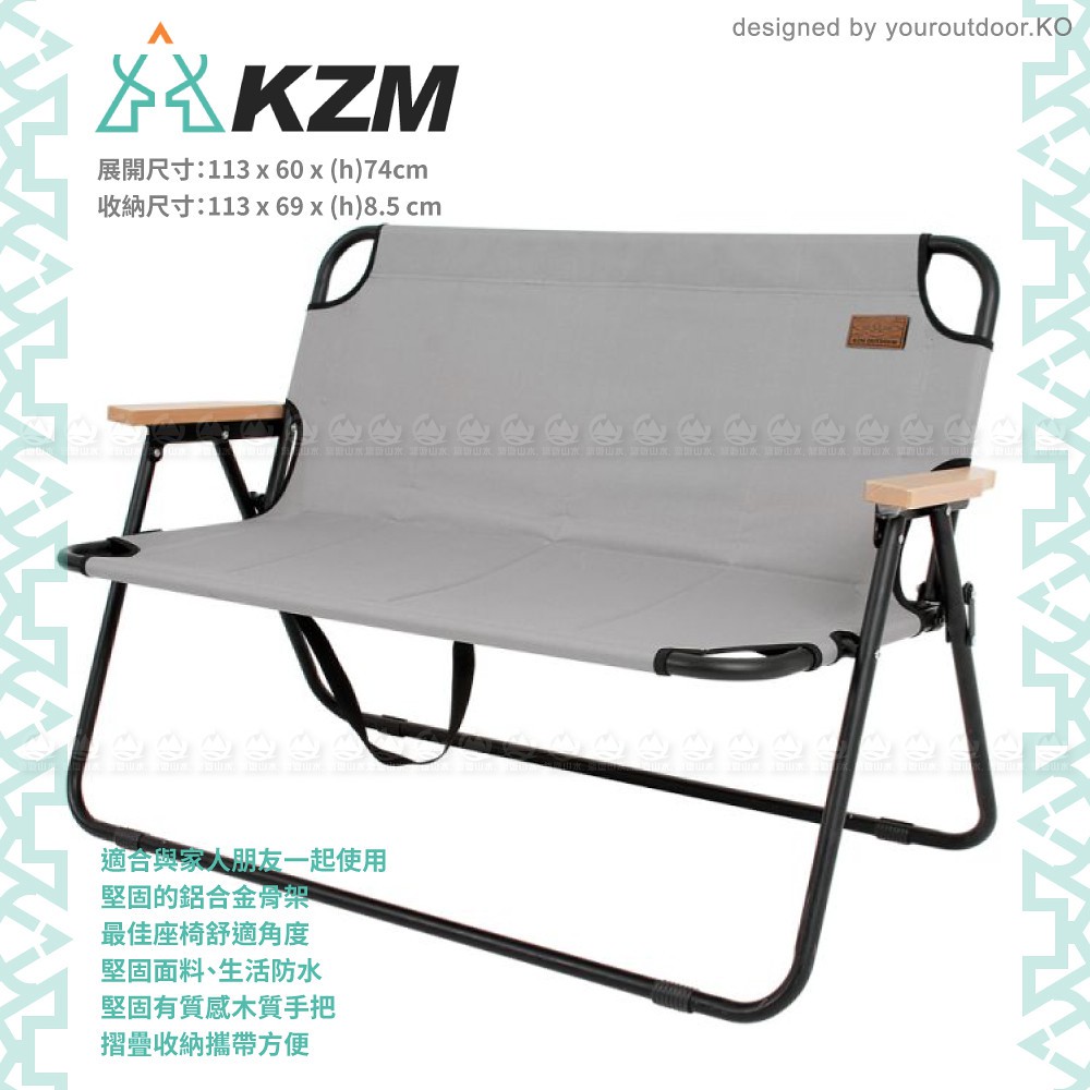 【KAZMI 韓國 KZM 素面雙人折疊椅《灰》】K20T1C014/露營椅/涼椅/摺疊椅/休閒椅/悠遊山水