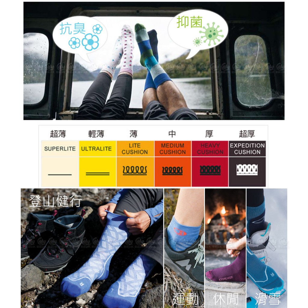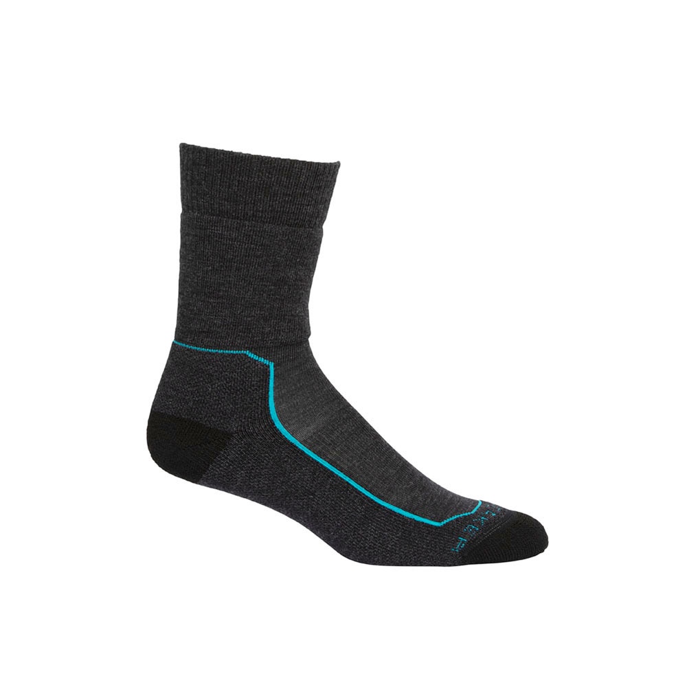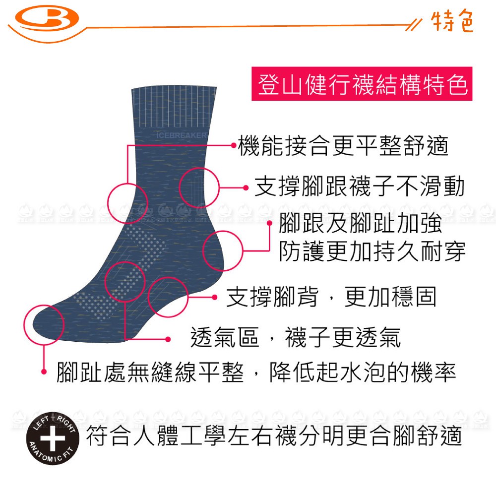 【Icebreaker 女 中筒中毛圈健行襪(+)《黑灰》】105097/快乾機能襪/排汗襪/羊毛襪/悠遊山水