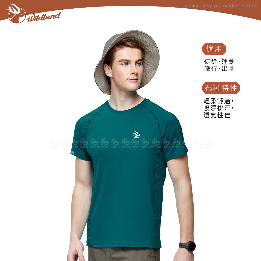 【Wildland 荒野 男 彈性輕量扒線圓領排汗衫《孔雀藍》】0A91632/快乾機能服/排汗衫/圓領短袖