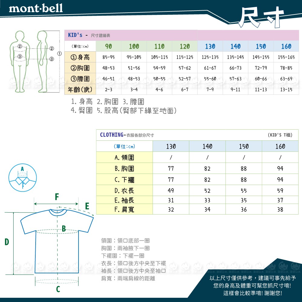 Mont-Bell 日本 童 Wickron mont-bell 短袖排T《東方藍》/1114314/戶外/悠遊山水