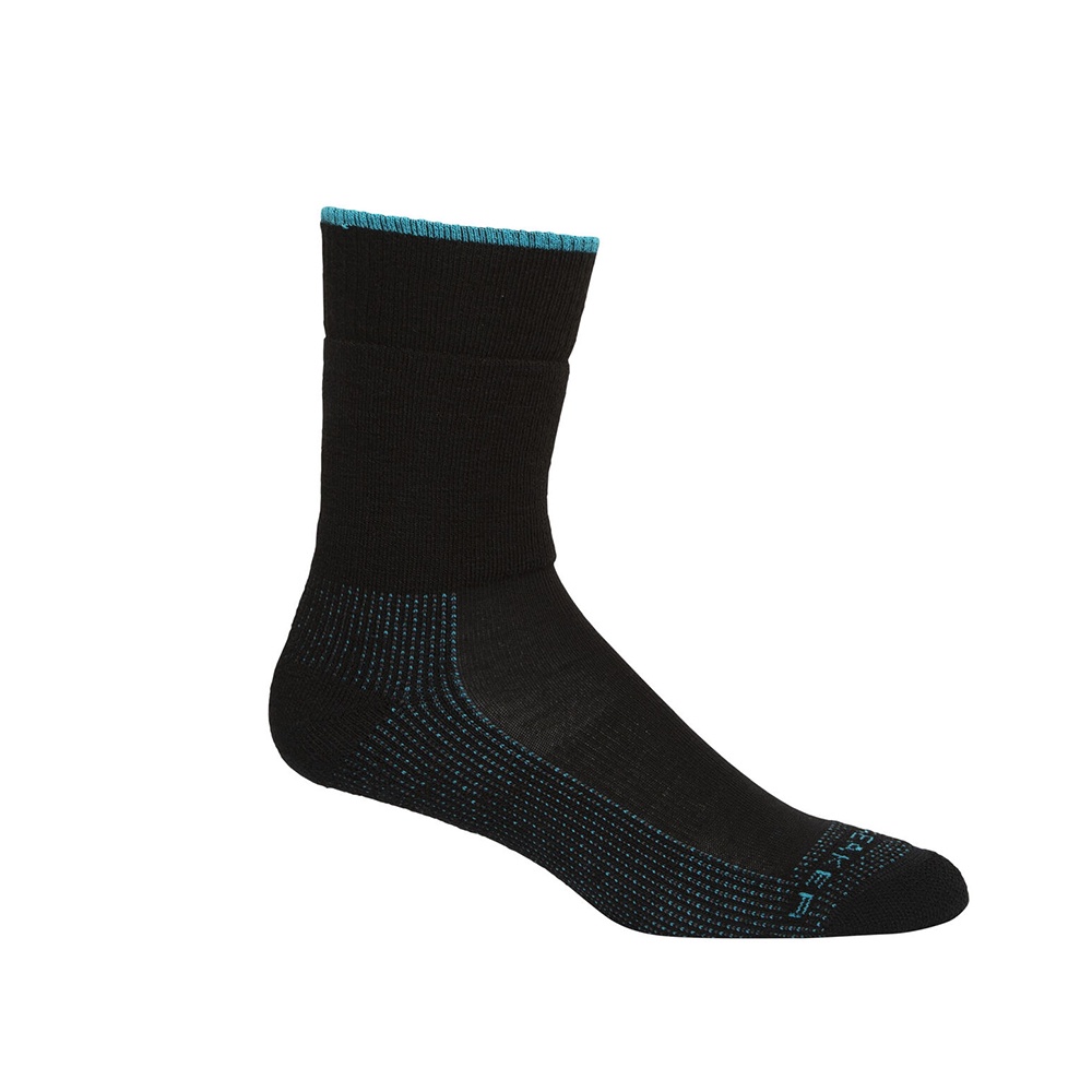 【Icebreaker 女 中筒中毛圈健行襪《黑/藍》】105114/快乾機能襪/排汗襪/羊毛襪/悠遊山水