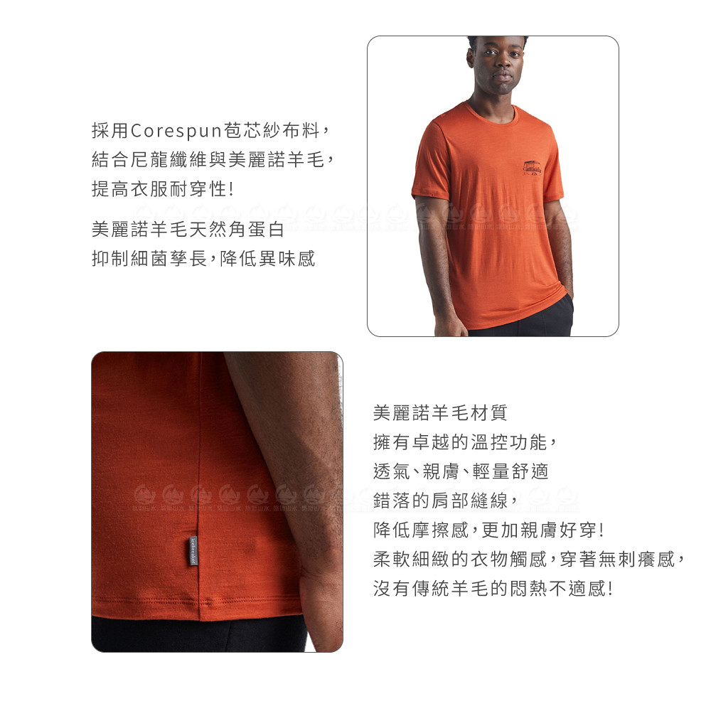 【Icebreaker 男 Tech Lite圓領短袖上衣AD150《破冰高峰-火焰橘》】IB105543/短/悠遊山水