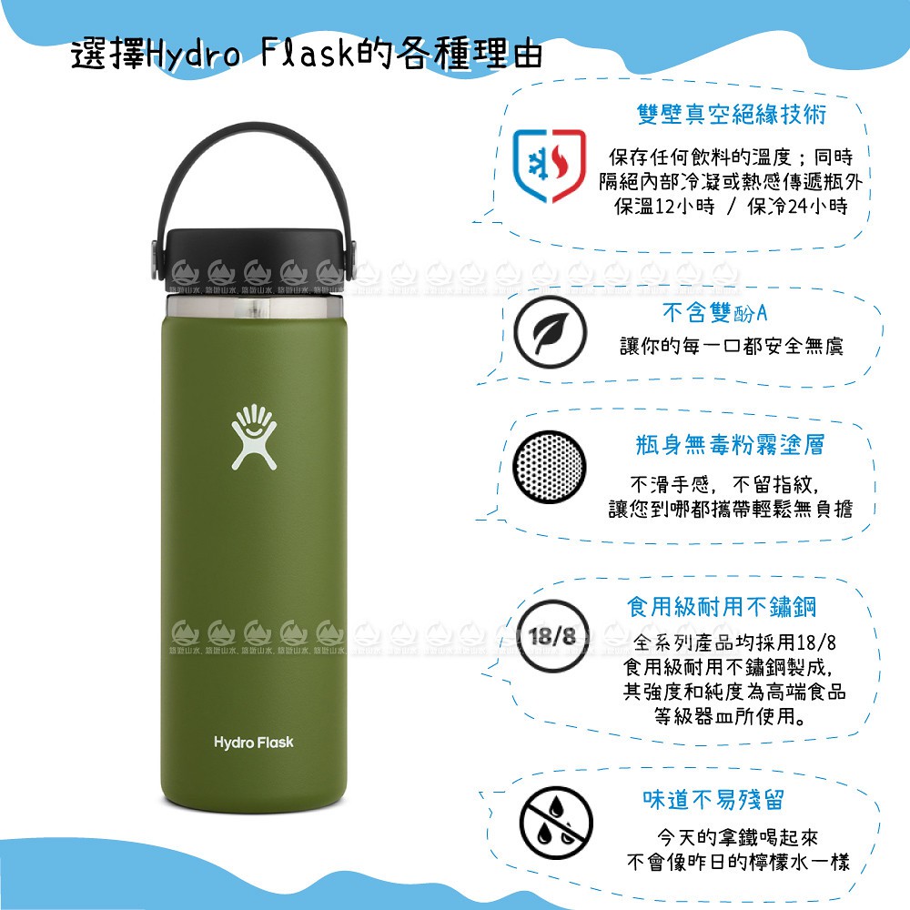 【Hydro Flask 美國 寬口真空保溫鋼瓶20oz《橄欖綠》】FW20BTS/保溫杯/隨身杯/水壺/單手/悠遊山水