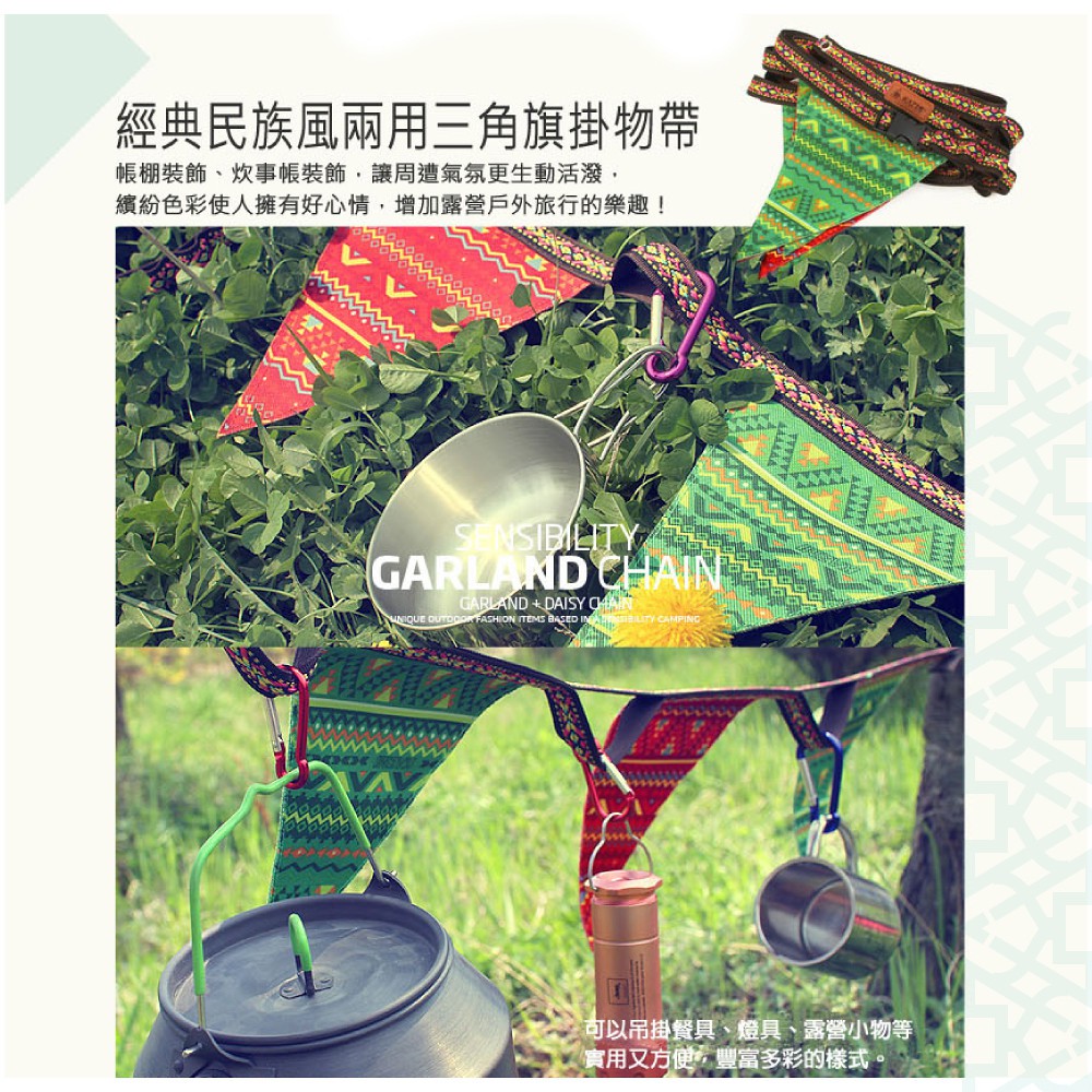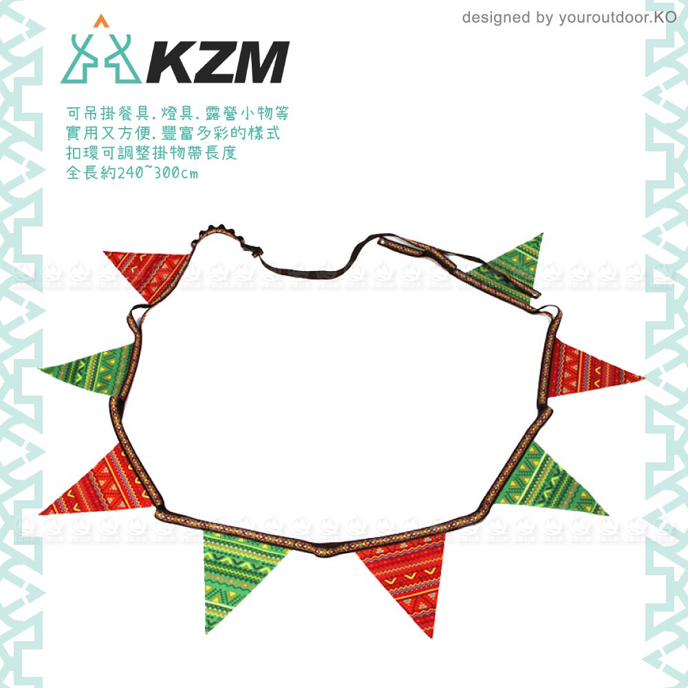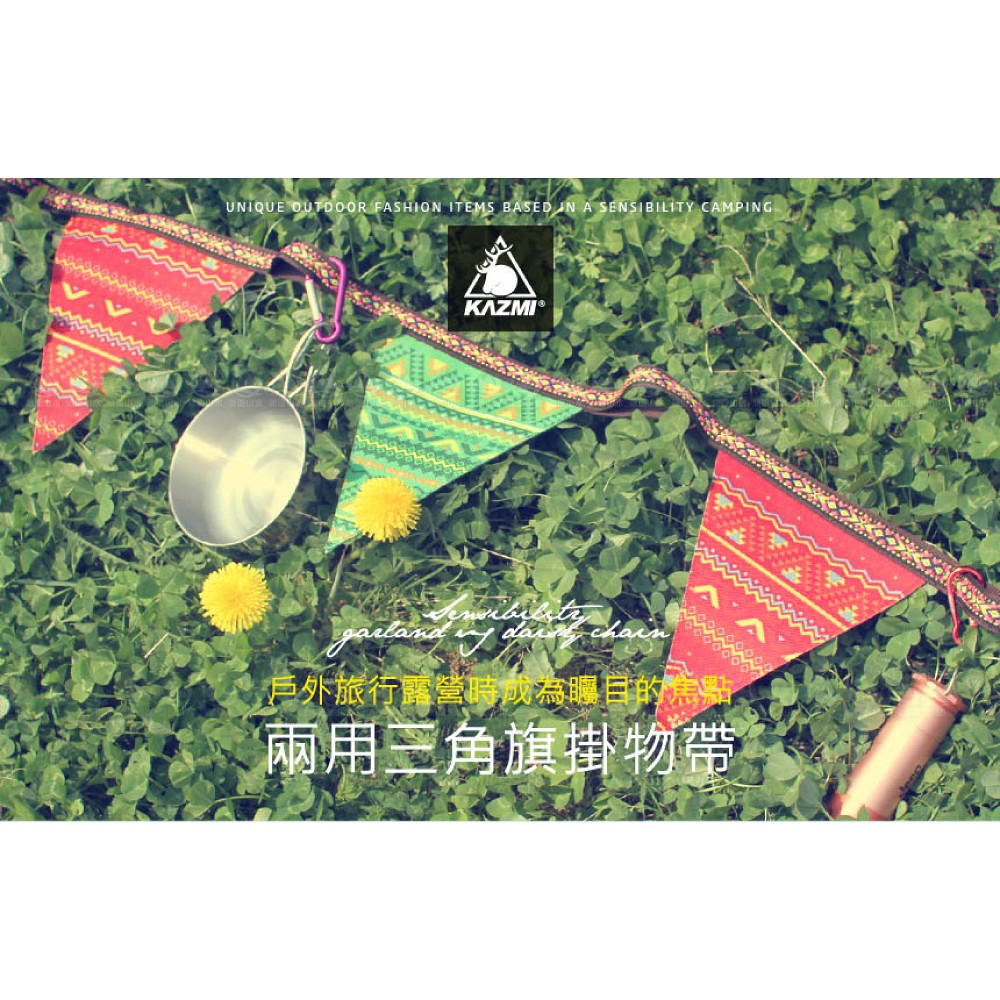 【KAZMI 韓國 KZM 經典民族風兩用三角旗掛物帶】K4T3T001/三角旗幟/三角吊旗/串旗/露營/帳篷/悠遊山水