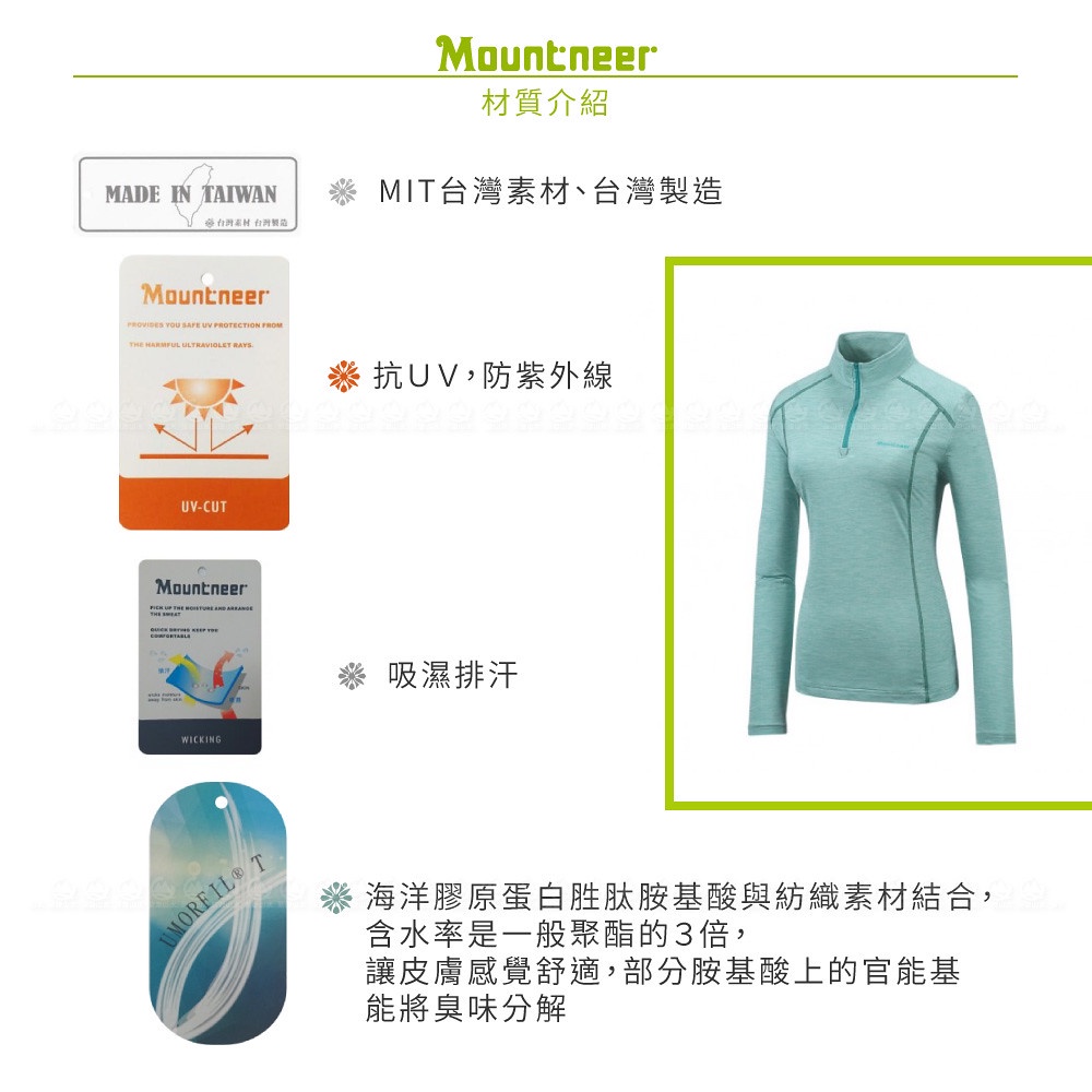 【Mountneer 山林 女 膠原蛋白長袖排汗衣《春綠》】31P66/排汗衣/夏款/薄長袖/排汗衣