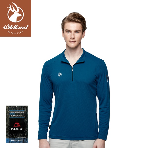 【Wildland 荒野 男 POLARTEC格狀半開襟長袖衣《帝國藍》】P1608/半領襟/運動衣/吸濕排汗/休閒衫