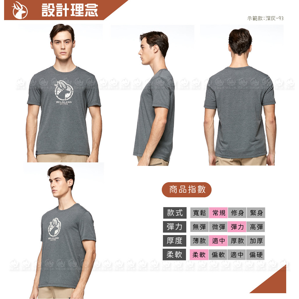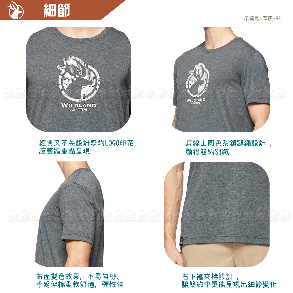 【Wildland 荒野 男 彈性LOGO印花圓領上衣《夜空灰》】0A91606/短袖/圓領T/運動排汗衣/休/悠遊山水