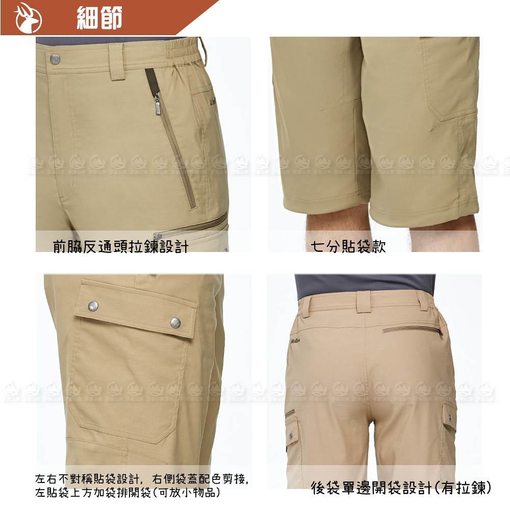 【Wildland 荒野 男 彈性抗UV貼袋七分褲《小麥色》】0A91370/防曬褲/運動褲/休閒褲/跑步