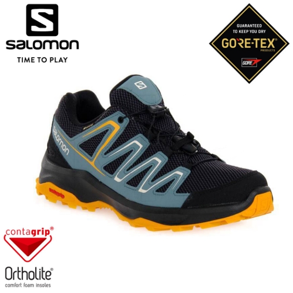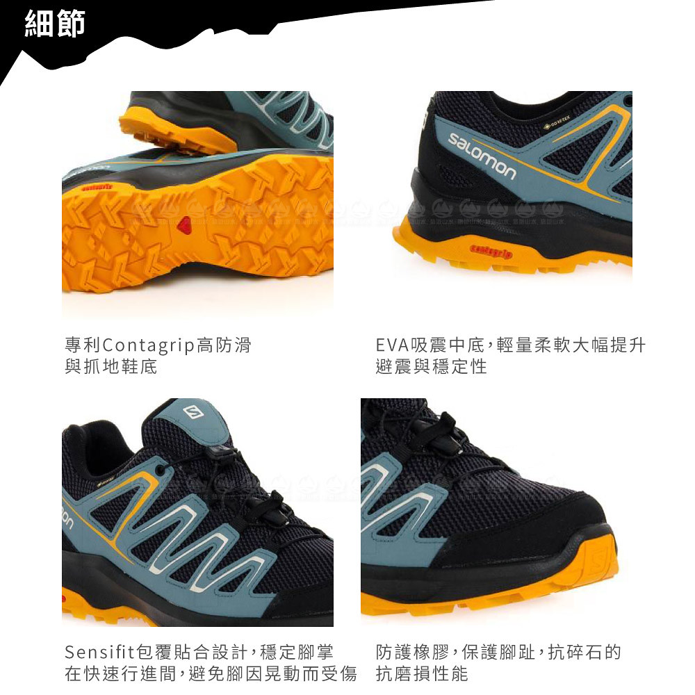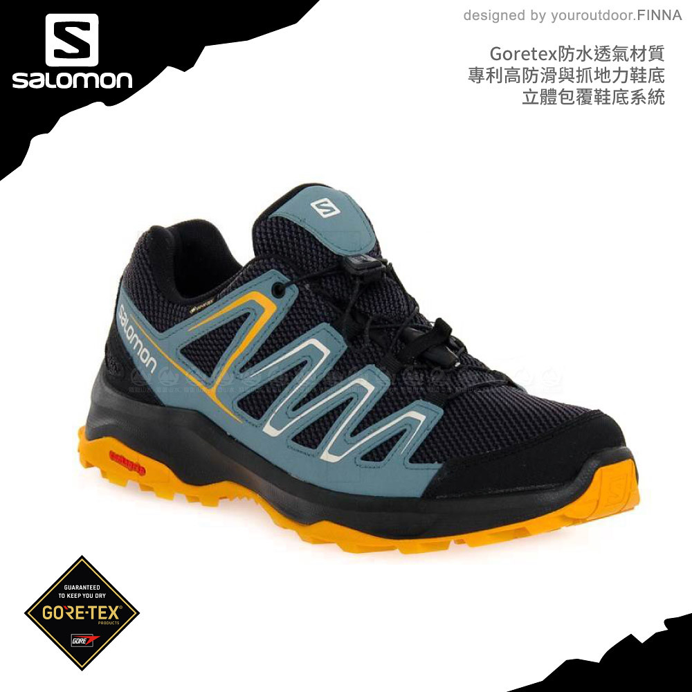 【SALOMON 索羅門 男 CUSTER GTX 低筒登山鞋《烏木黑/褐綠/秋葉黃》】412316/戶外鞋/悠遊山水