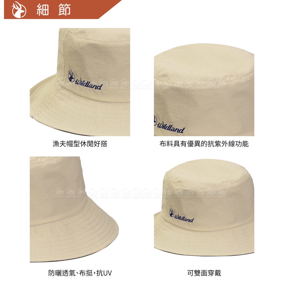 【Wildland 荒野 中性抗UV雙面漁夫帽《白卡其》】W1075/防曬帽/休閒帽/漁夫帽