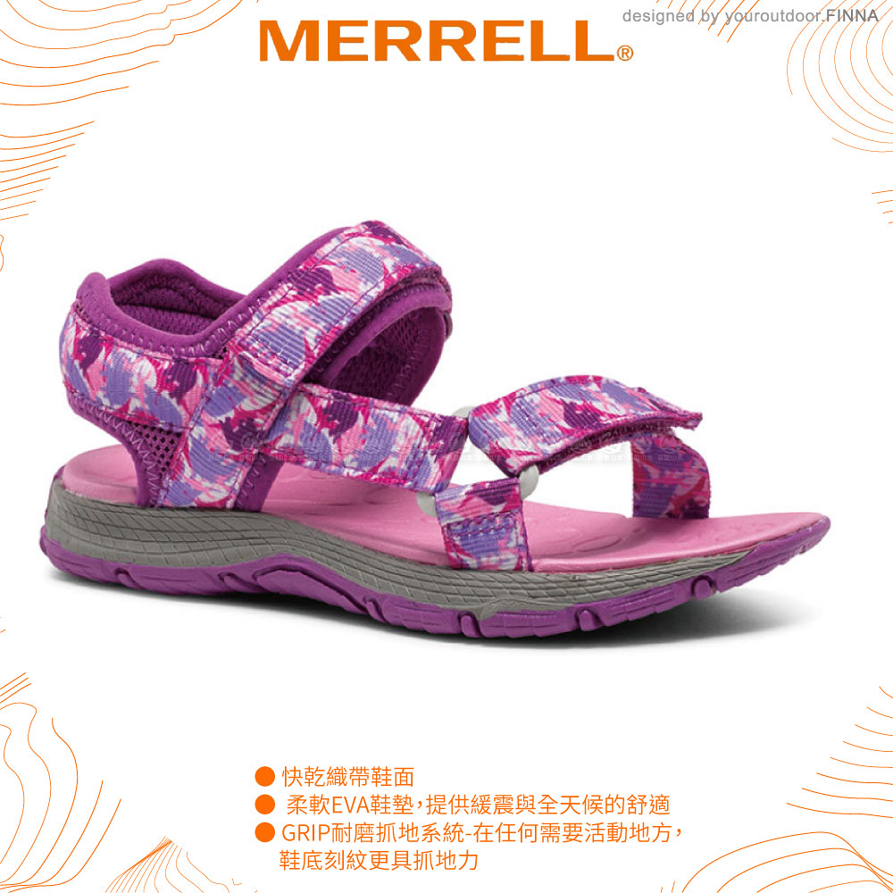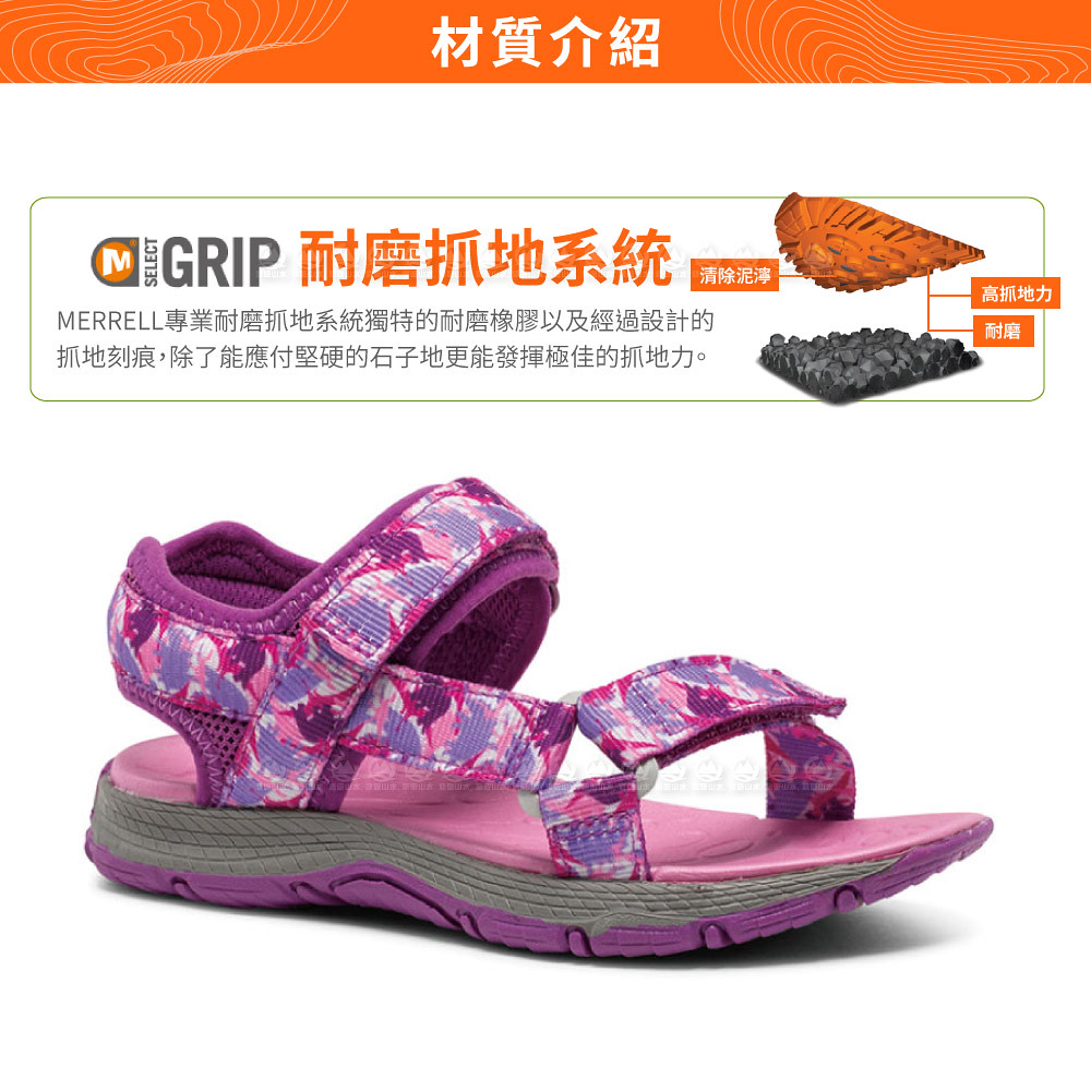 【MERRELL 美國 童 KAHUNA WEB 健行涼鞋《印花/粉紅》】MLK16495/休閒涼鞋/兒童涼鞋/悠遊山水