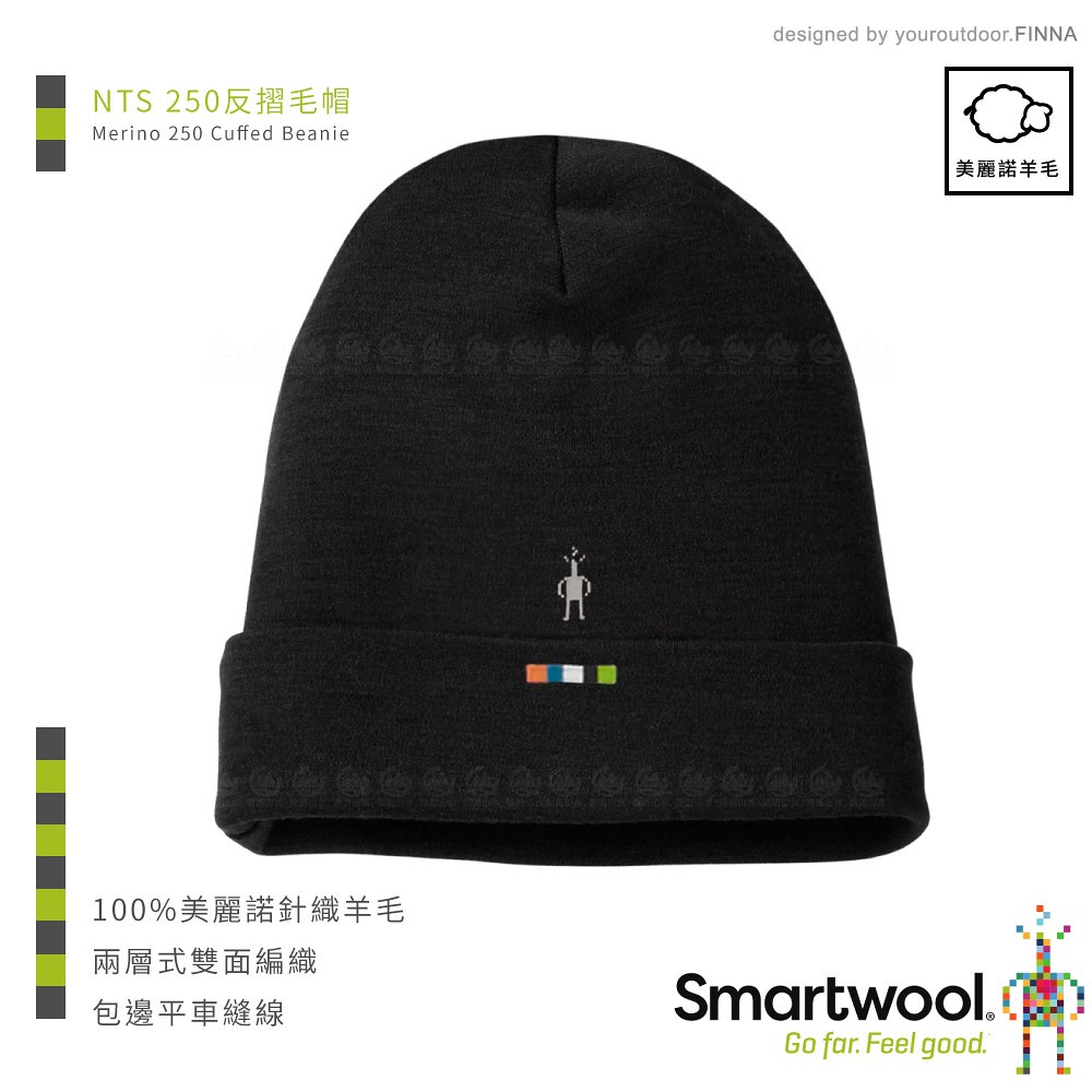 【SmartWool 美國 NTS 250反摺毛帽《黑》】SW0SW956/保暖帽/毛帽/休閒帽/悠遊山水