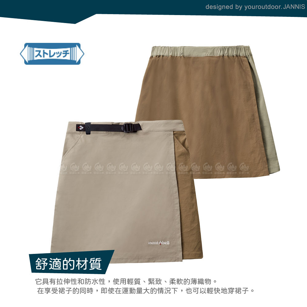 【Mont-Bell 日本 女 STRETCH OD WRAP 褲裙 《淺卡/淺褐》】1105583/短裙/快乾排汗