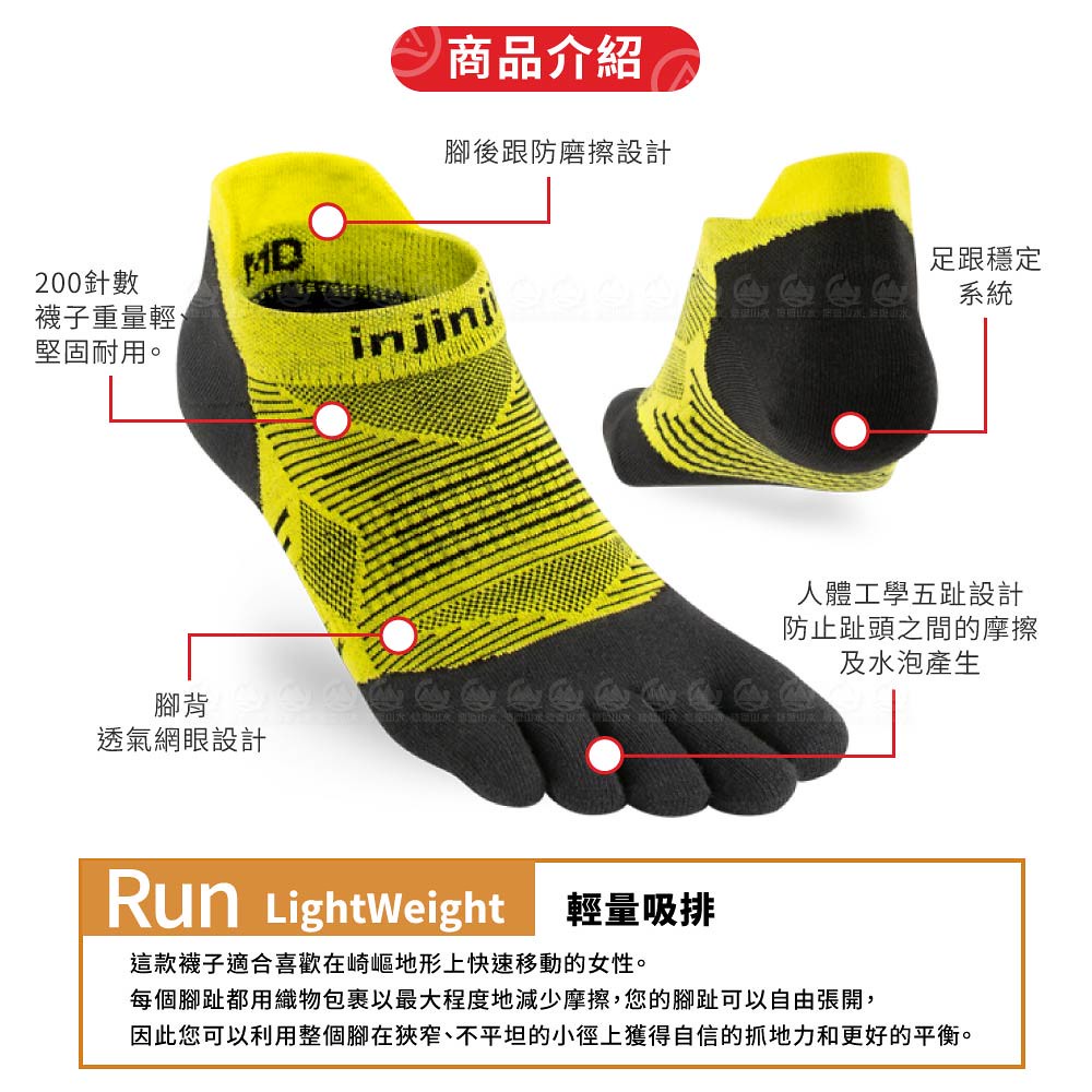 【INJINJI 美國 RUN 輕量吸排五趾隱形襪《萊姆黃》】0322/五指襪/專業排汗襪/登山健行襪/休閒襪
