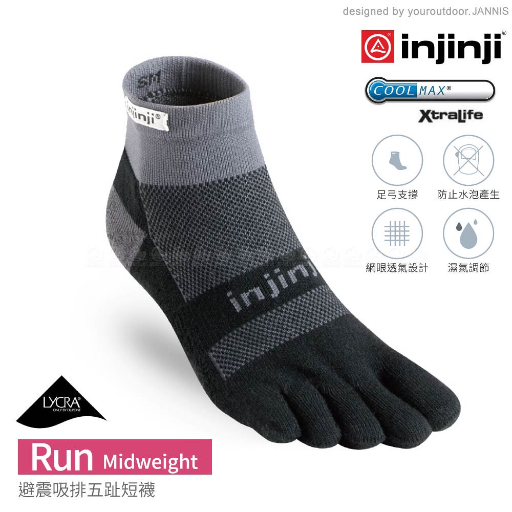 【INJINJI 美國 RUN 避震吸排五趾短襪《黑》】4895/五指襪/專業排汗襪/登山健行襪/休閒襪