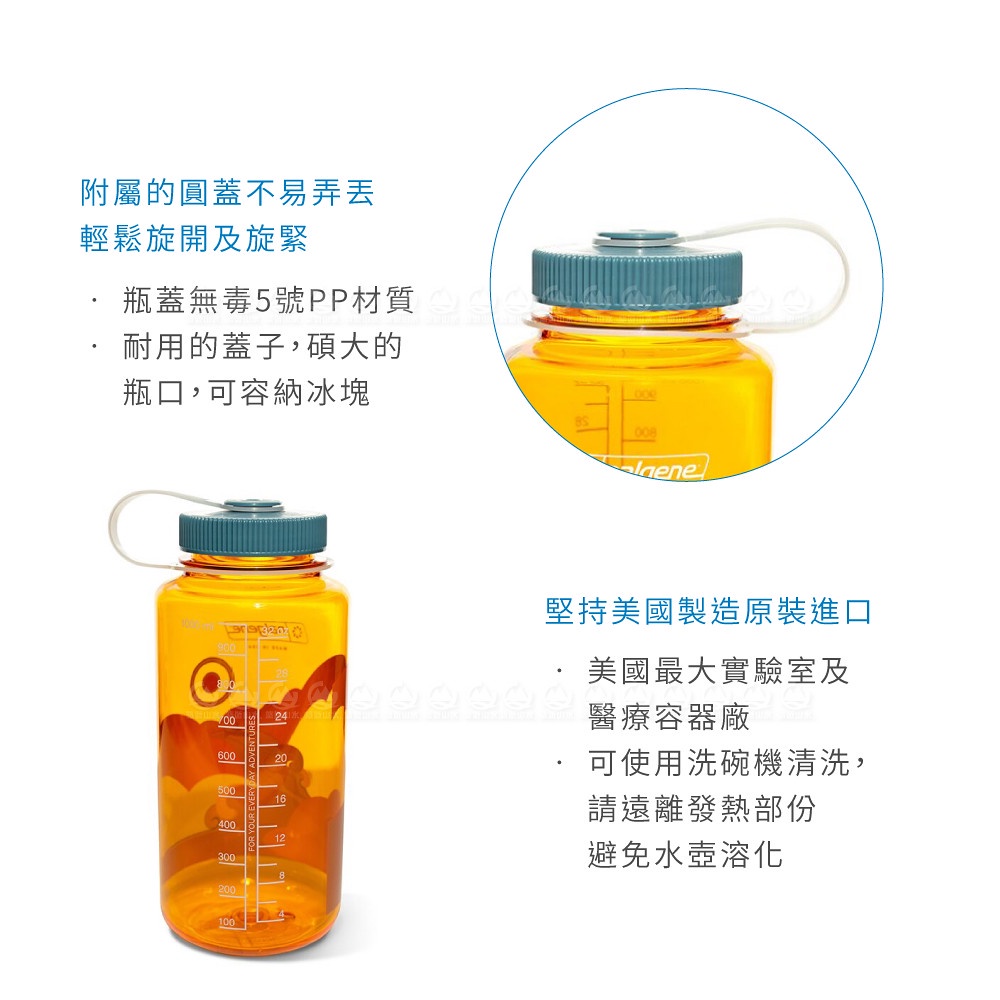 【Nalgene 美國 寬嘴水壺 1L《柑橘復古風》】682020-0152/運動水壺/休閒水壼/隨身水壺/水瓶