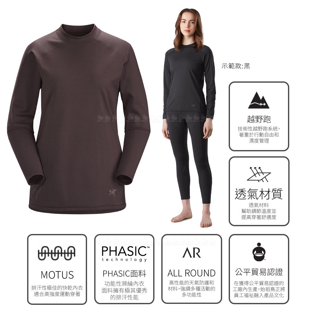 【ARC'TERYX 始祖鳥 女 Motus AR 快乾長袖圓領衫《幻想雜紫》】28340/排汗衣/排汗衣/長袖上衣